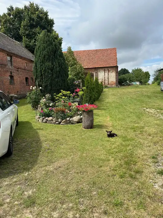 W ramach posiadanego udziału obecny własciciel zajmuje mieszkanie dwupokojowe o pow. ok 58mkw, dawną oborę o pow. ok 100mkw, stodołę ok 150mkw oraz ogród o pow. ok 2200mkw.