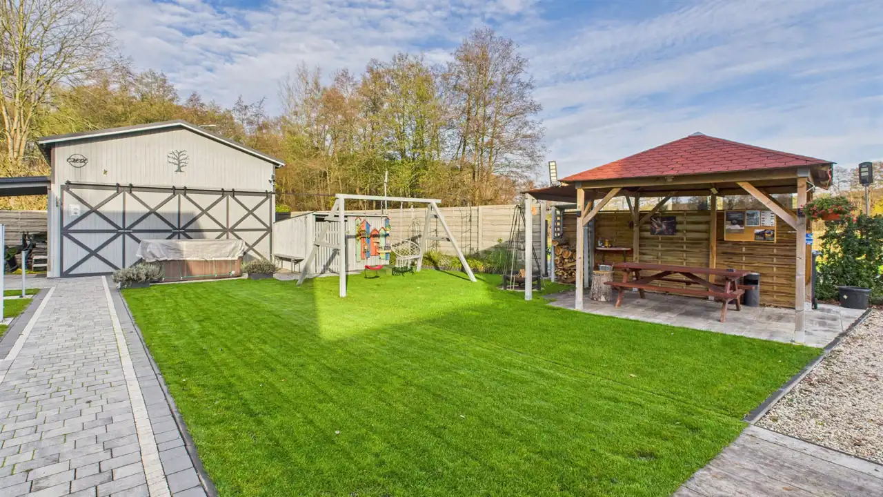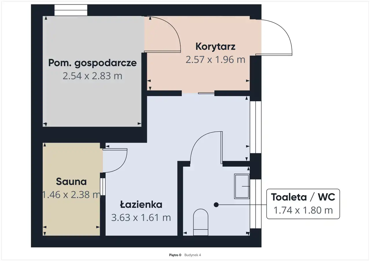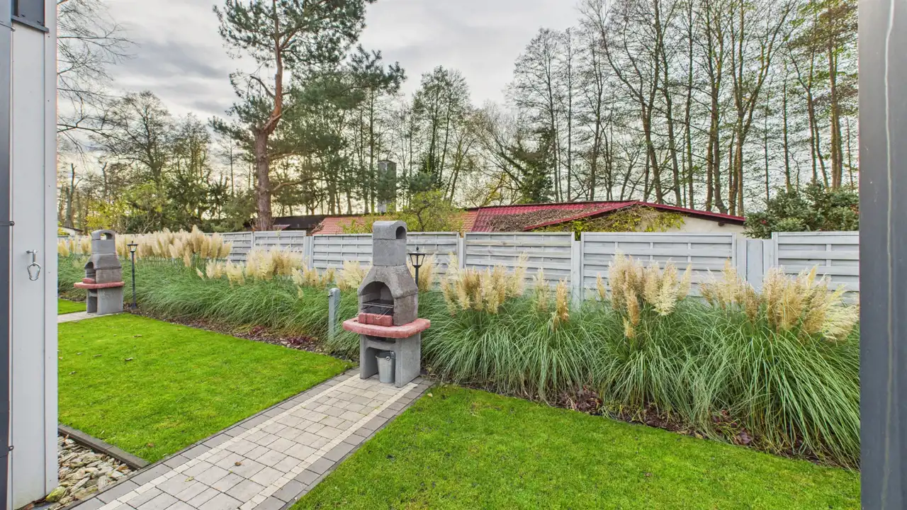 - budynek z sauną, prysznicem, WC i pomieszczeniem gospodarczym
