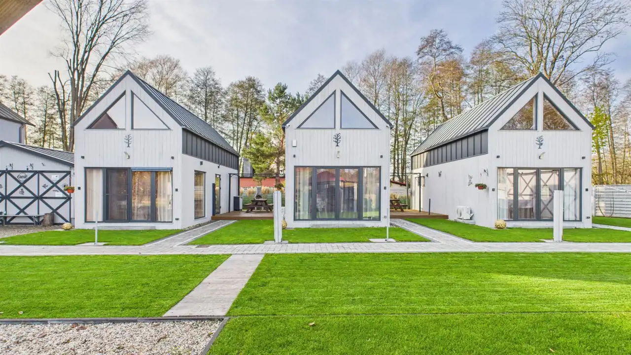 Trzy całoroczne domki drewniane: