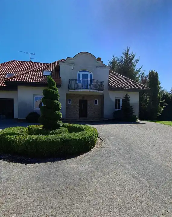 Powierzchnia całkowita domu 300m2, kondygnacje mieszkalne zajmują powierzchnię 200m2, działce znajduje się budynek gospodarczy o powierzchni 40m2z jednostanowiskowym garażem, WC, kuchnią i przyległą zadaszoną altaną. Atrakcją tej oferty jest zewnętrzny basen.