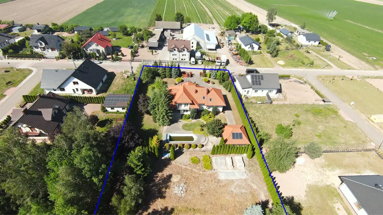 Nieruchomość składa się z czterech numerów ewidencyjnych o łącznej powierzchni 3774 m2 z bezpośrednim dostępem do drogi asfaltowej publicznej z dwóch stron.