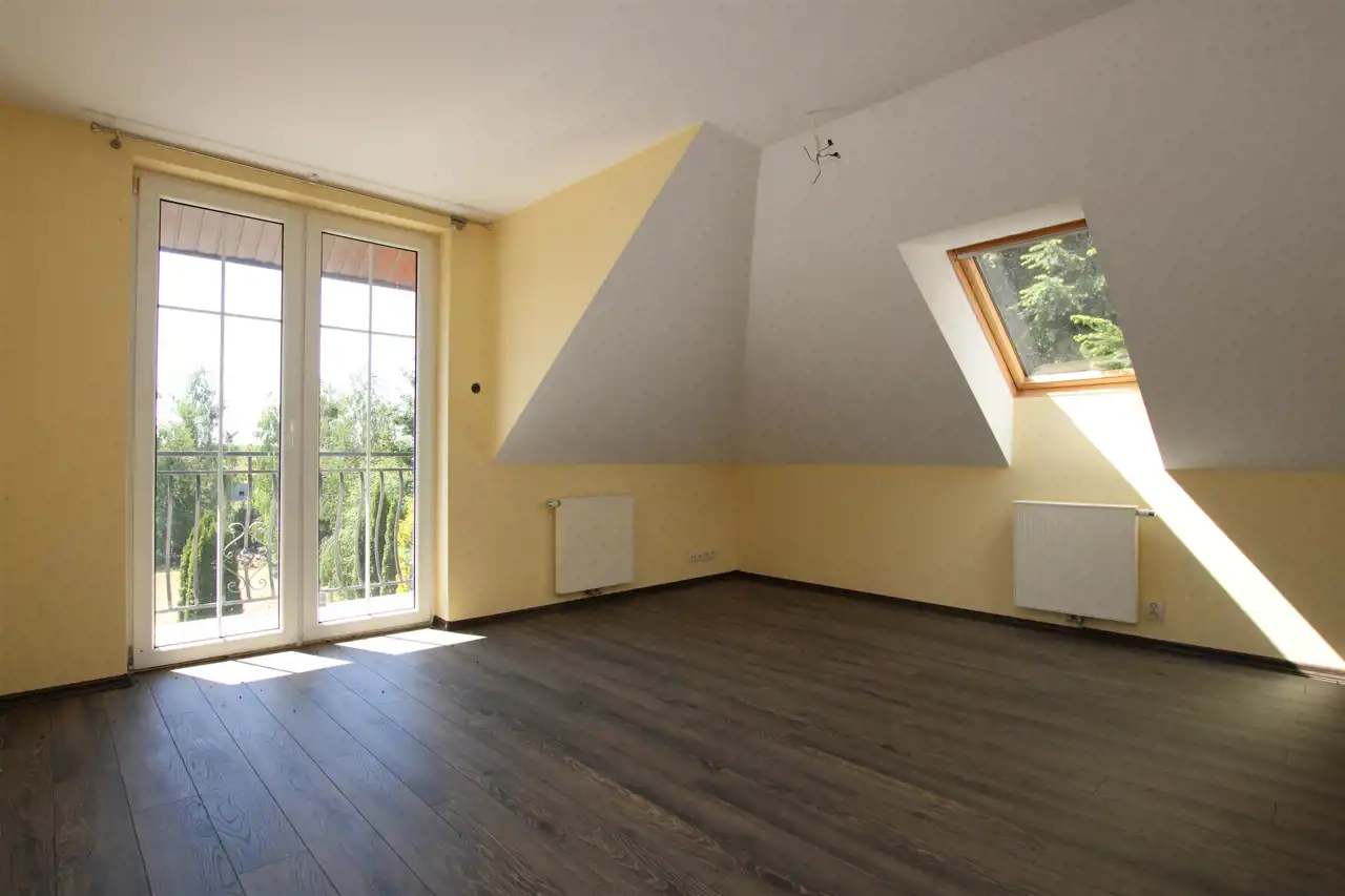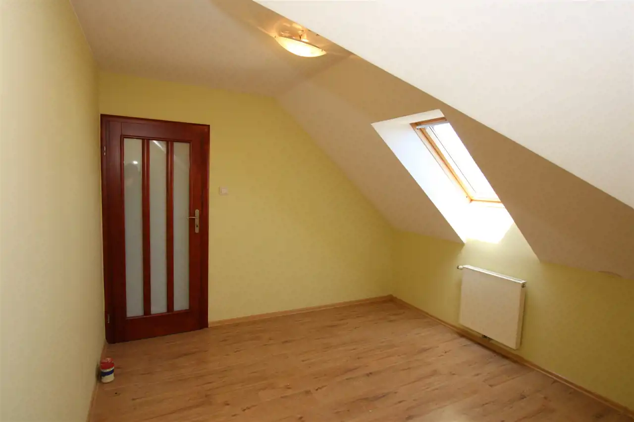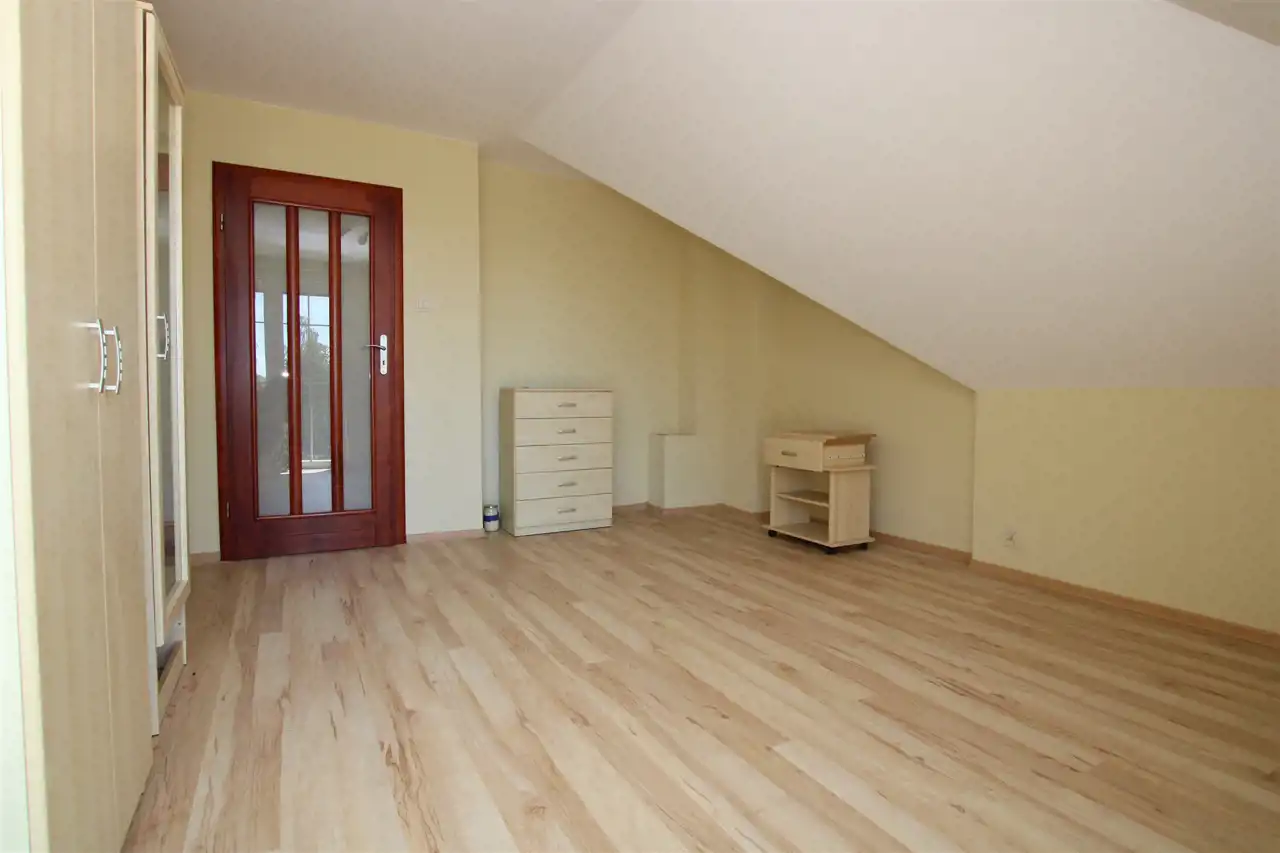 Poddasze gdzie znajdują się 4 widne i ustawne pokoje, dwie garderoby, dwie łazienki w tym jedna wyposażona w prysznic, druga w wannę.