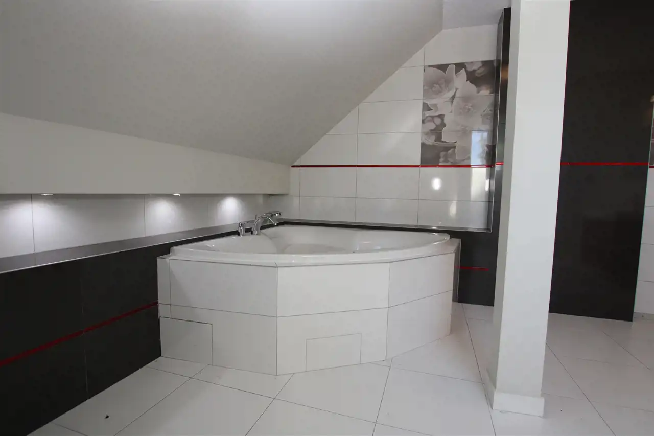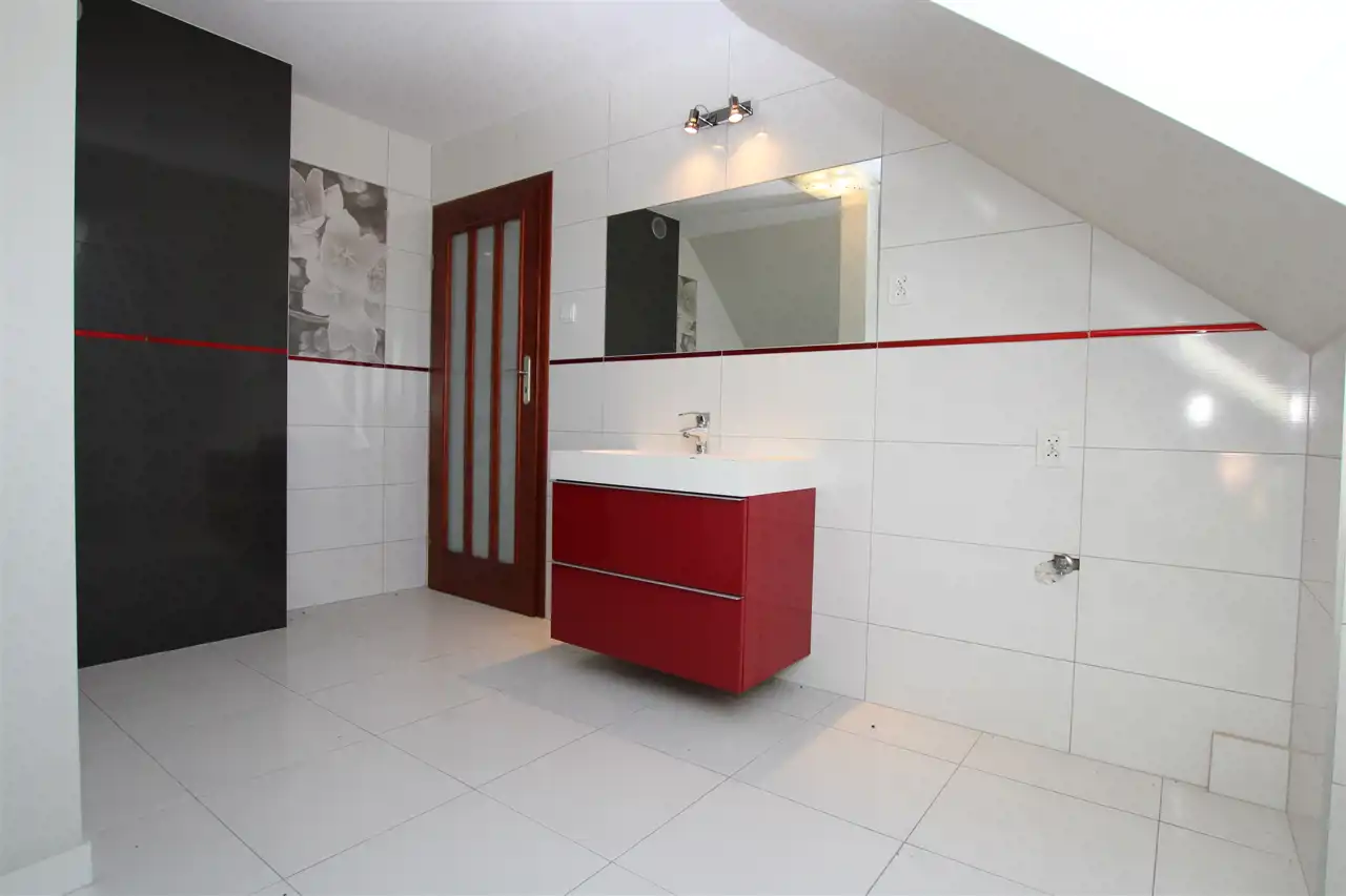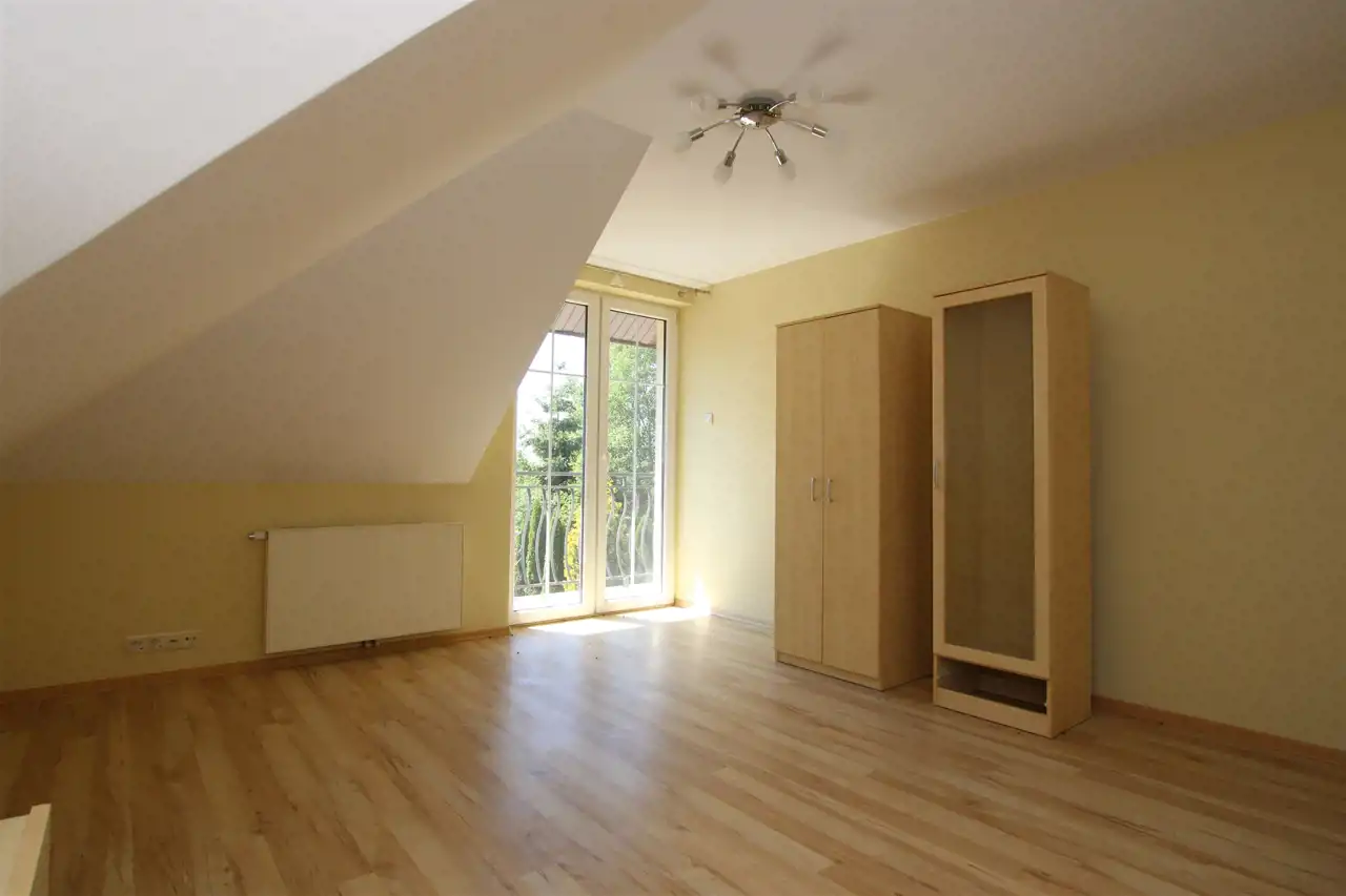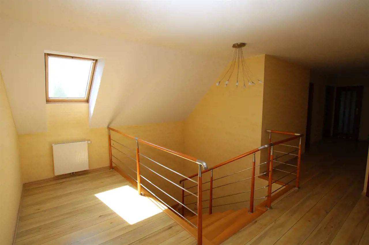 Poddasze gdzie znajdują się 4 widne i ustawne pokoje, dwie garderoby, dwie łazienki w tym jedna wyposażona w prysznic, druga w wannę.