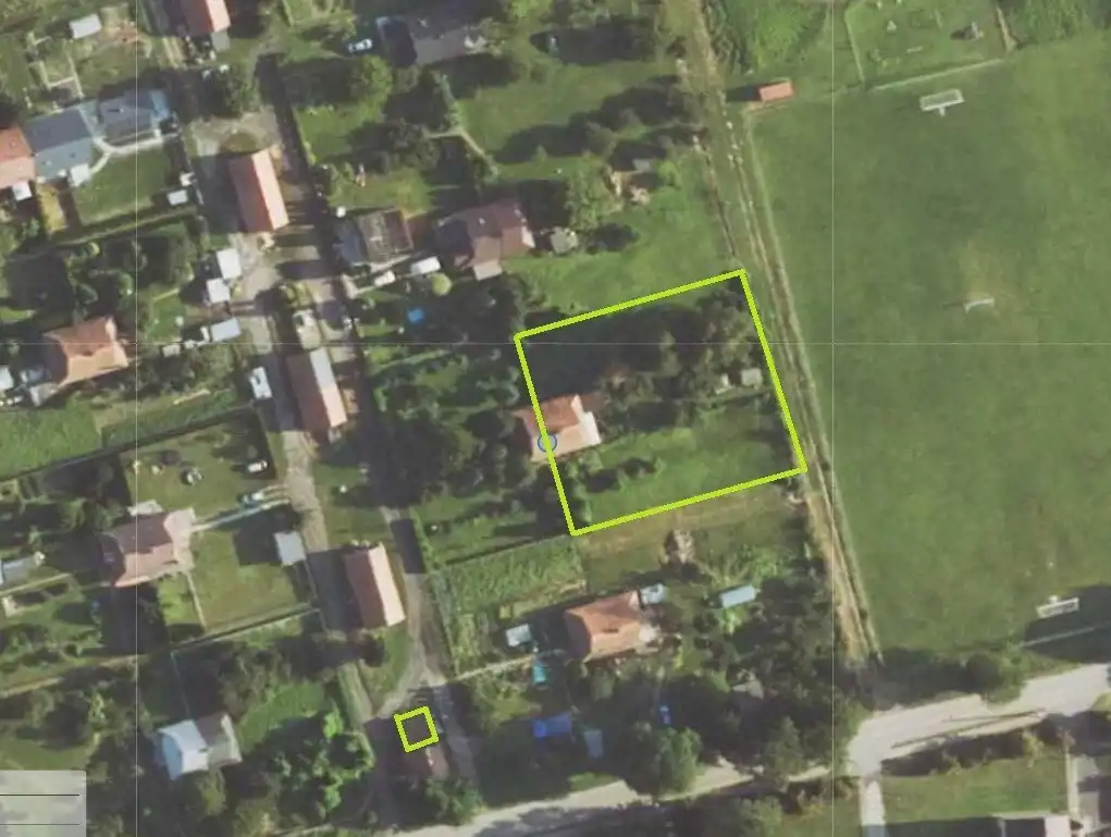 • działka: 1800 m² (ok. 40 x 45 m, kształt prostokąta)