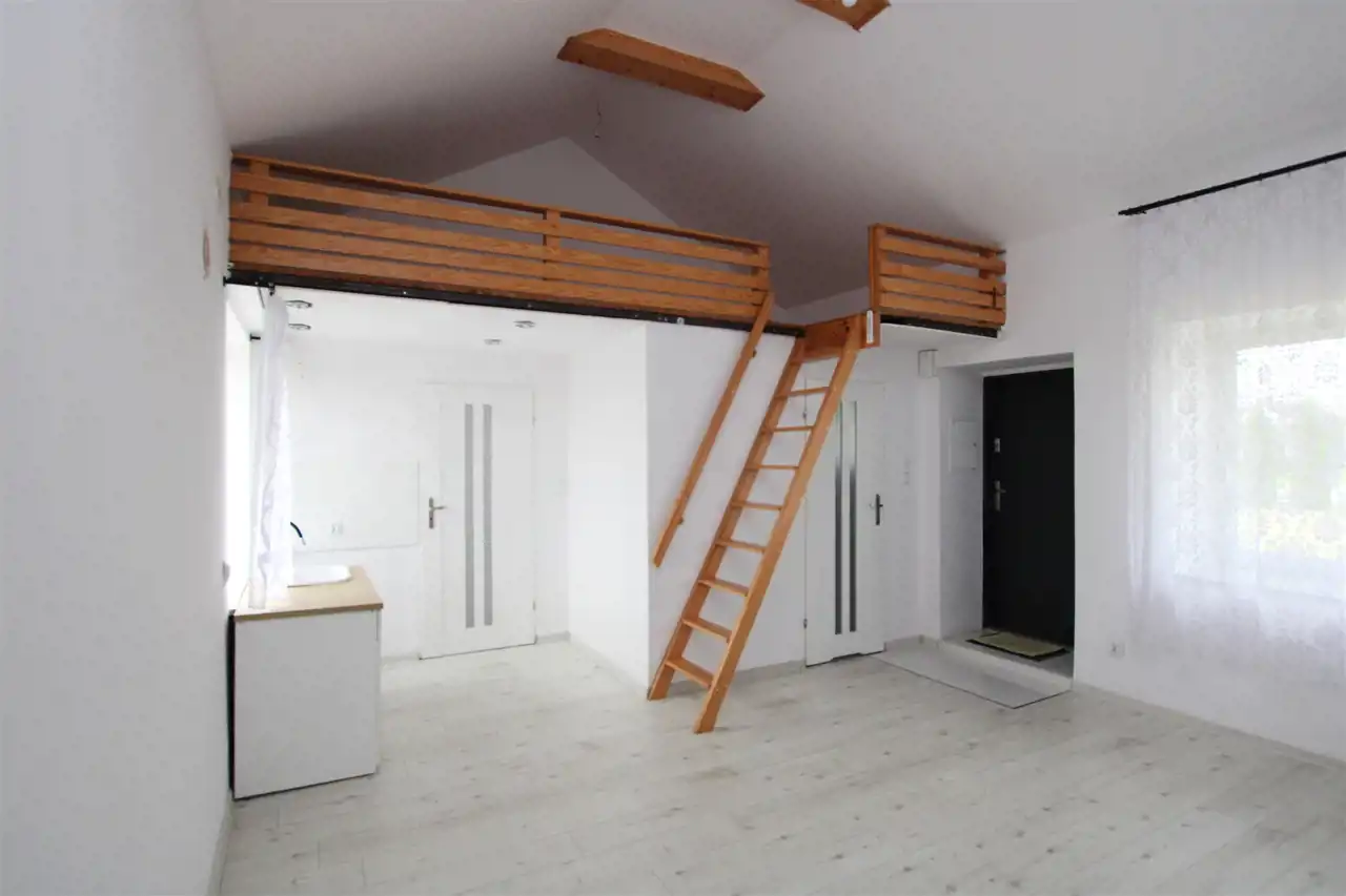 Nieruchomość o powierzchni użytkowej 70m2 składa się z salonu z otwartą kuchnią, łazienki razem z WC, sypialni oraz antresoli.