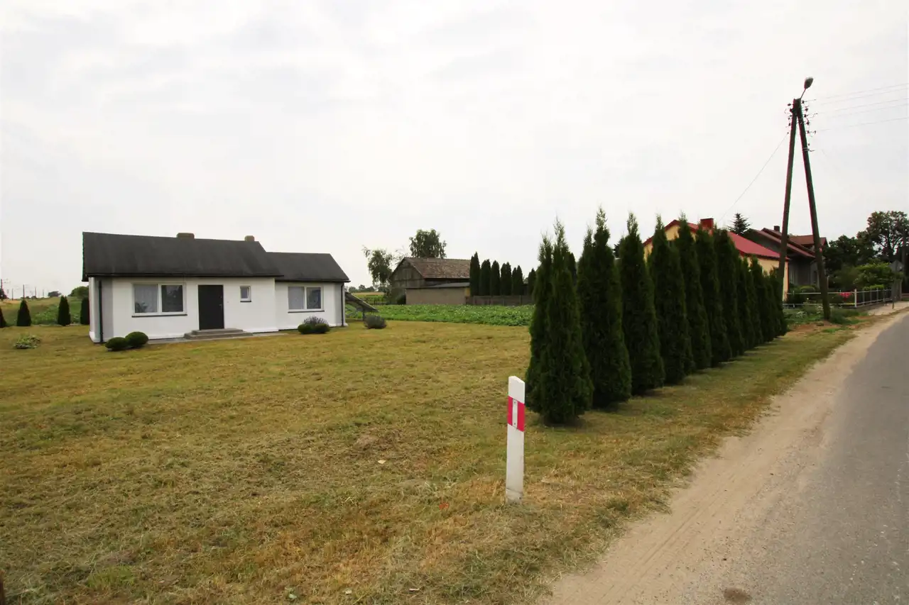 Dom znajduje się na działce w nieregularnym kształcie o powierzchni 1076m2 bezpośrednio przy drodze asfaltowej.