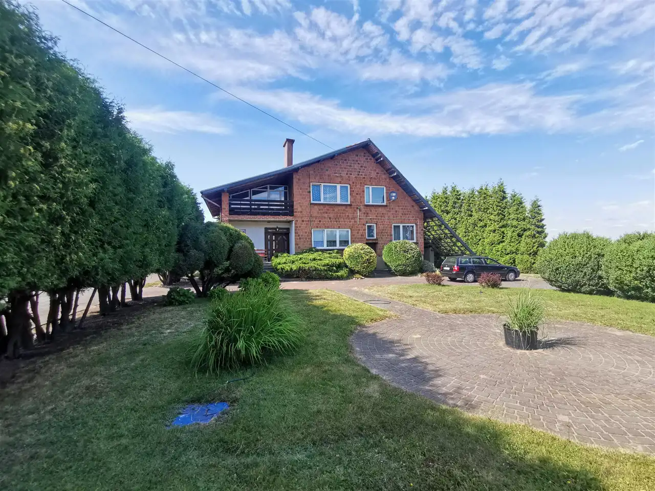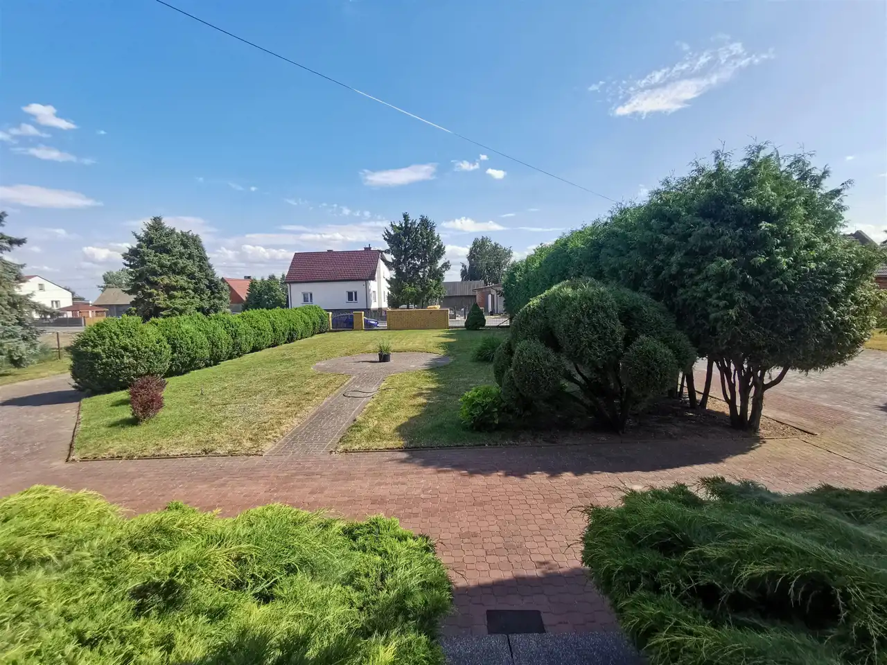 - Duża brama wjazdowa prowadzi na dziedziniec, który jest pięknie zagospodarowany i ułatwia komunikację.