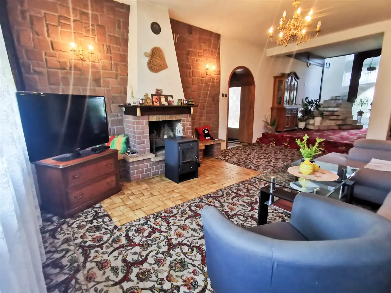 - Ogrzewanie podłogowe z ekogroszkiem i romantyczny kominek sprawiają, że poczujesz się tu jak w oazie ciepła.