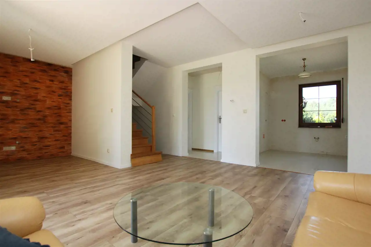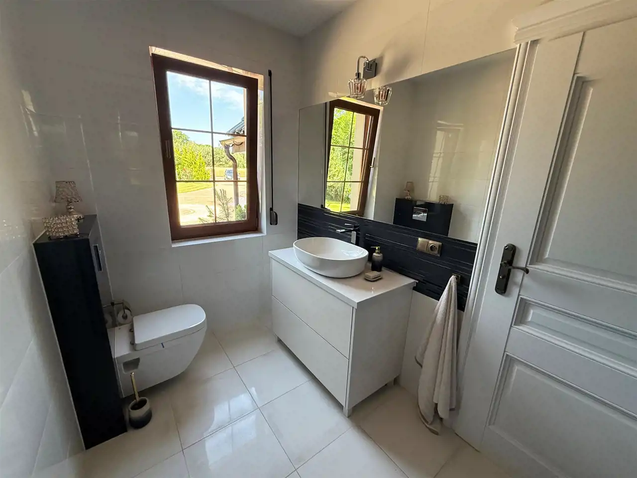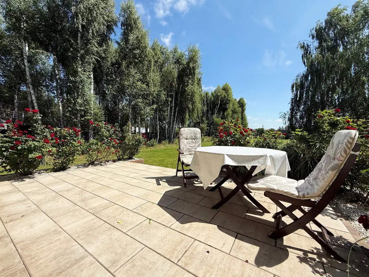Zarówno ogród jak i budynek wewnątrz bardzo zadbane, duże okna dobrze doświetlają wnętrze, a okna tarasowe otwierają salon na ogród, powiększając tym przestrzeń.
