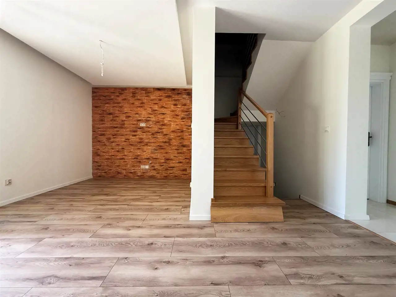 Ściany w całym domu pokryte tynkiem gipsowym oraz gładzią do pomalowania na górze, na podłogach panele wysokiej klasy oraz płytki.