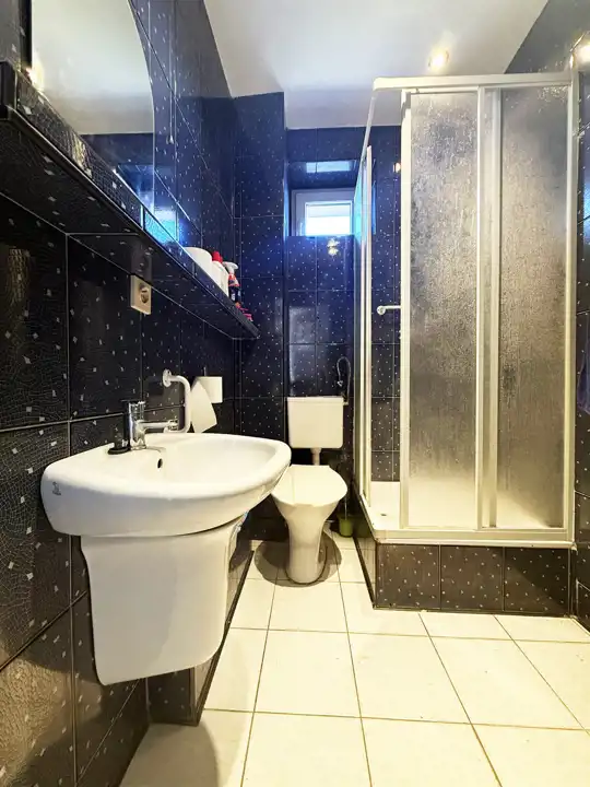 Na ścianach kafle i gładzie gipsowe.