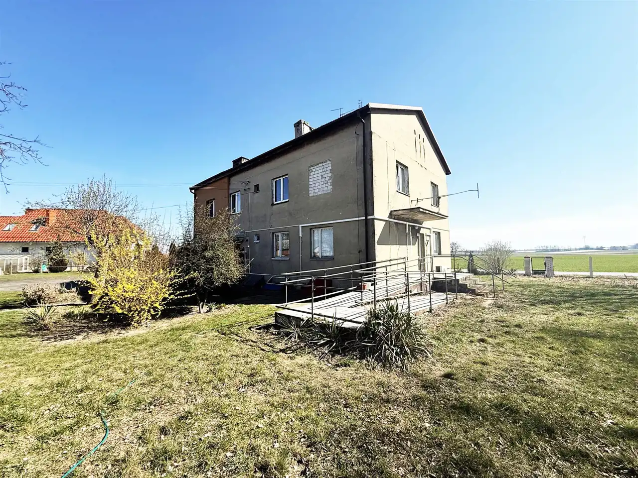 Wokół zabudowa mieszkalna oraz pola uprawne.