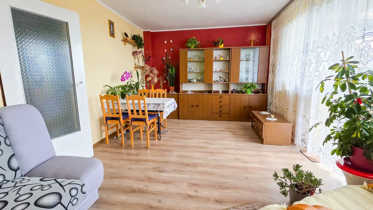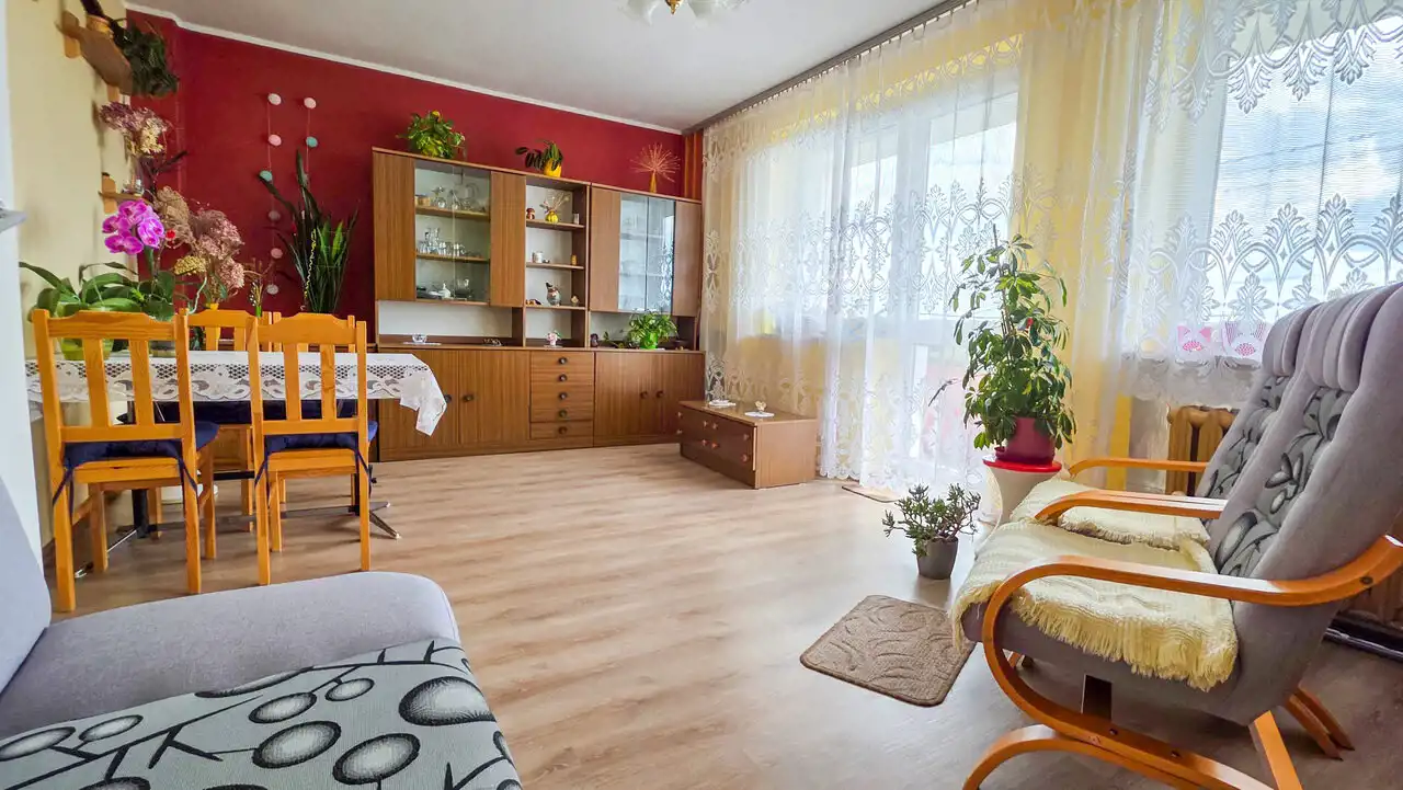 Mieszkanie dwustronne i rozkładowe, co oznacza solidne doświetlenie i swobodne poruszanie się – do odświeżenia.