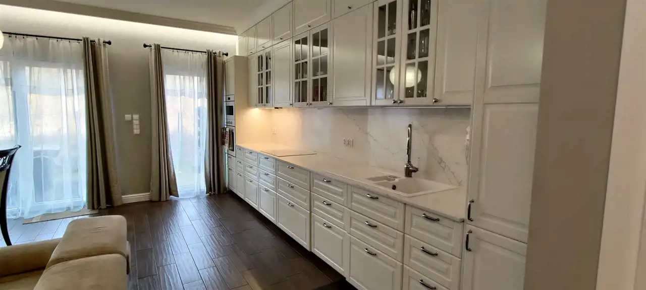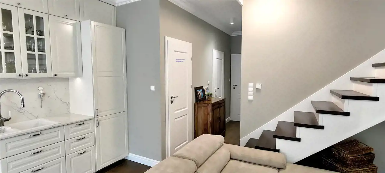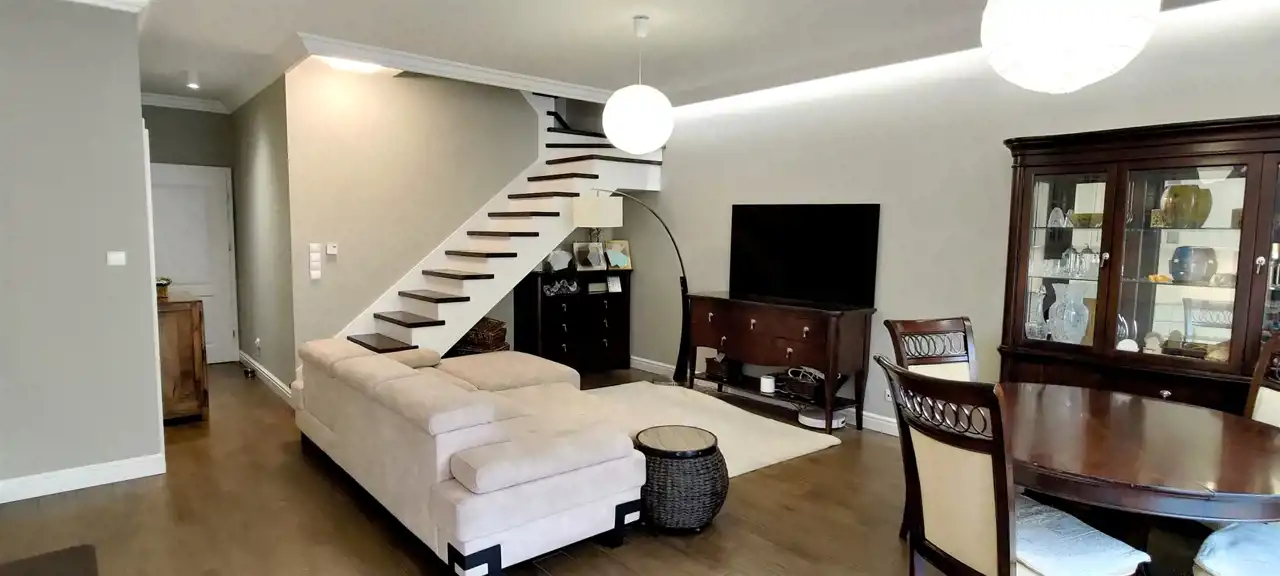 Wnętrze segmentu zostało wykończone w wysokim standardzie, nie wymaga żadnych remontów, jest gotowe do wprowadzenia. Powierzchnia użytkowa lokalu = 109,71 m² + ok. 20 m2 poddasze nieużytkowe.