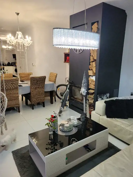 Dom posiada rolety zewnętrzne, ogrzewanie gazowe, podłogowe oraz kominek stanowiący urokliwy wystrój salonu oraz dodatkowe źródło ogrzewania. Wnętrze zaprojektowane przez architekta.