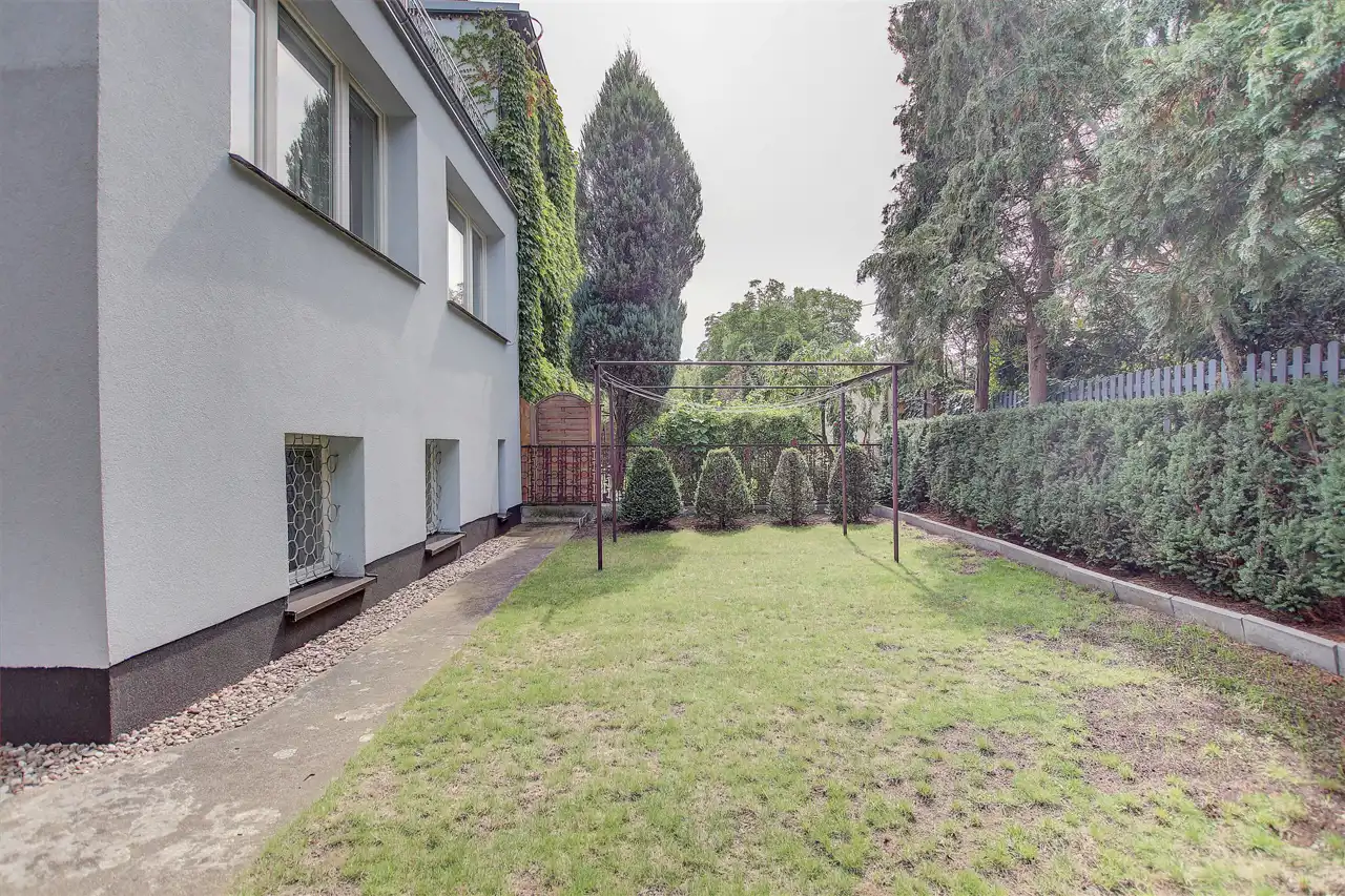 Dom o powierzchni całkowitej 180m2 (użytkowa niespełna 120m2) znajduje się na 300 metrowej działce otoczonej zielenią i starodrzewiem.