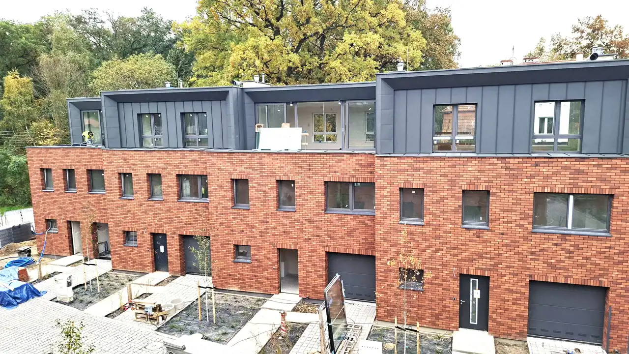 Każdy dom dysponuje własnym, przestronnym tarasem oraz ogródkiem, oferując prywatną przestrzeń do wypoczynku na świeżym powietrzu, w bezpośrednim kontakcie z naturą. Dla większego komfortu każdy dom dysponuje garażem oraz dodatkowym miejscem postojowym na zewnątrz.