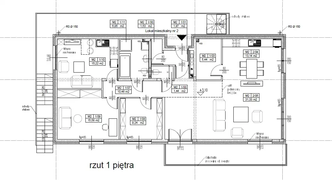 Lokal nr 2 pow. 100 m2 obejmuje 1 piętro domu. Niezależne wejście od lokalu nr 1.