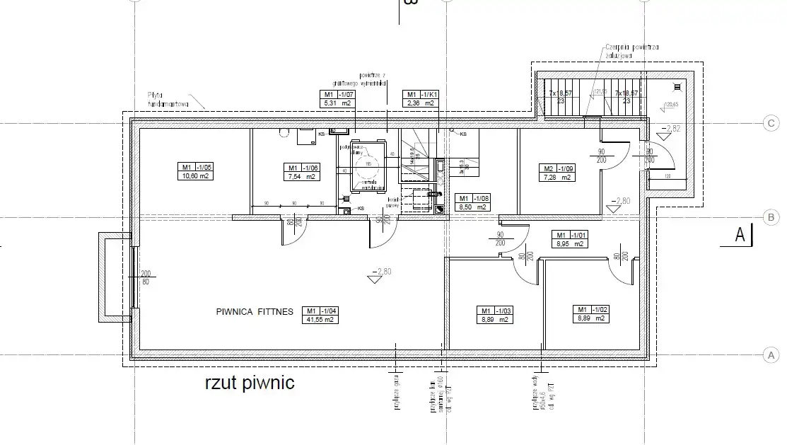 Piwnica - Strefa Fitness pow. 42 m2 + pomieszczenia gospodarcze.