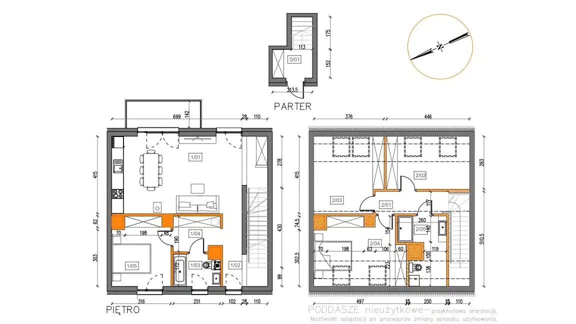 Powierzchnia: 61,20 m² (z możliwością adaptacji poddasza – dodatkowe 42,90 m²)