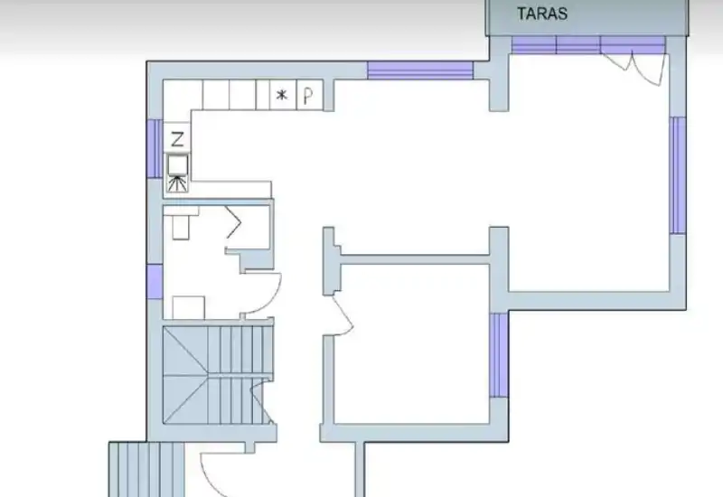 Parter : wiatrołap + przedpokój + łazienka + pokój, salon z kuchnią - ok 67m2