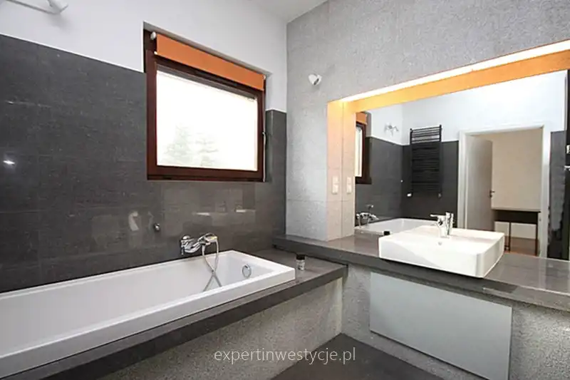 Całość nowocześnie wykończona i wyposażona. Dom zabezpieczony roletami antywłamaniowymi oraz systemem całodobowej ochrony.