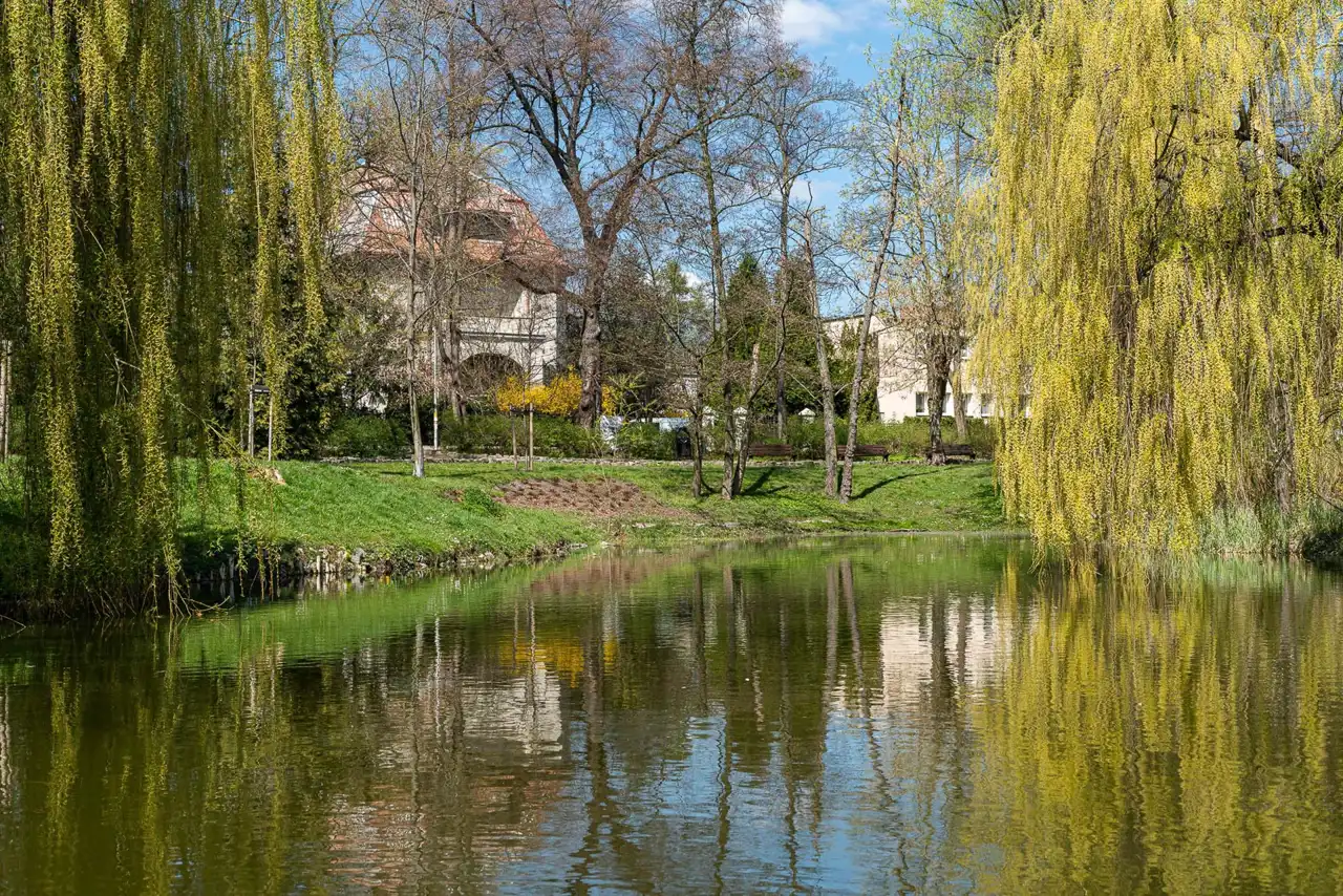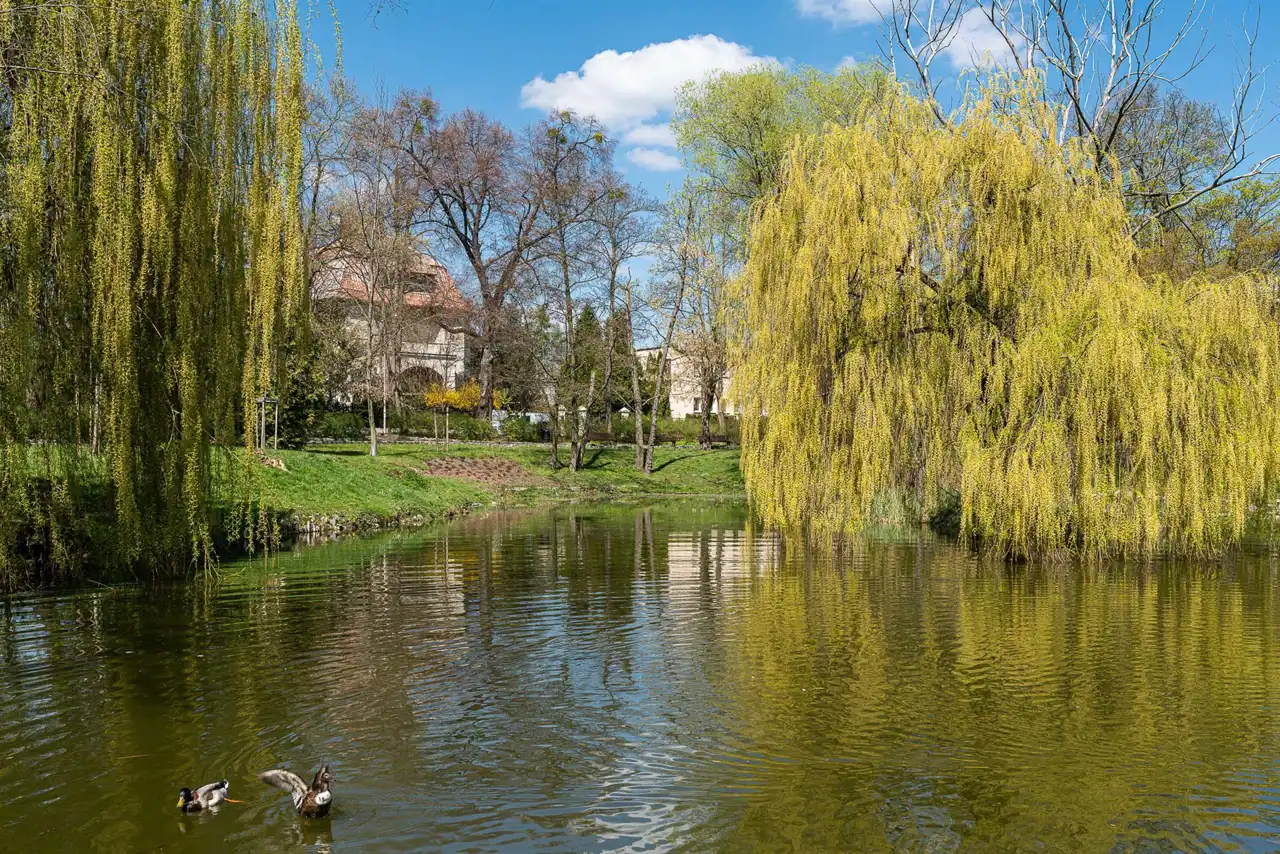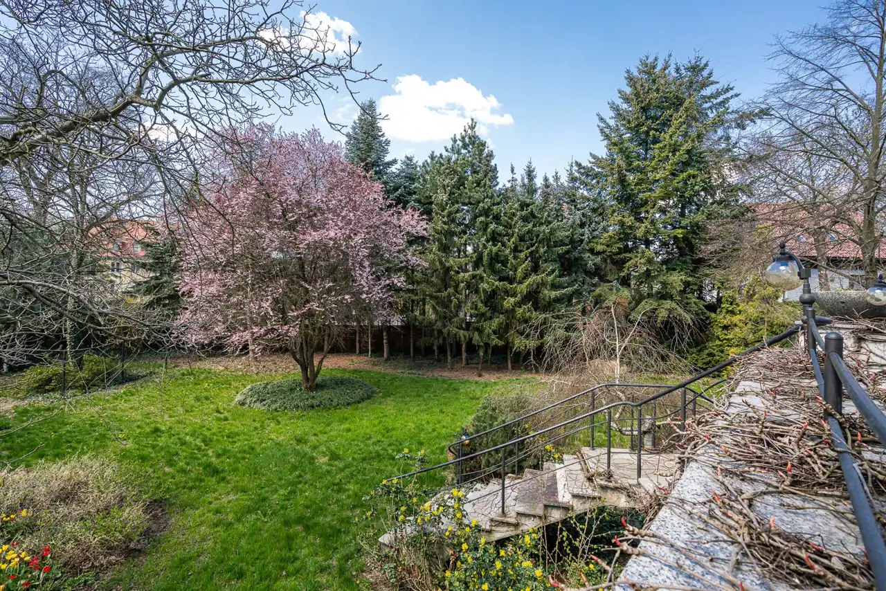 Bardzo ładny ogród z licznymi nasadzeniami starodrzewiem.