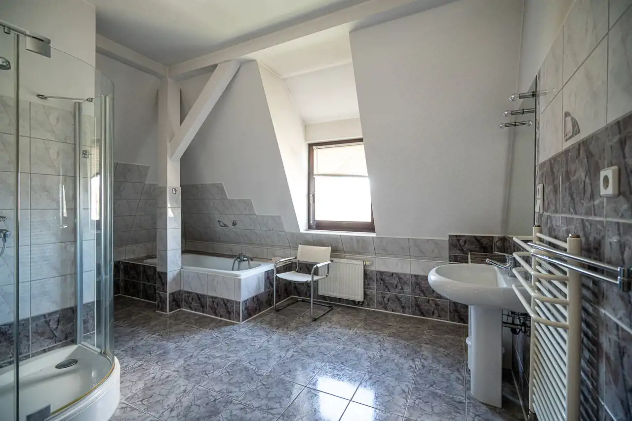 - dwie łazienki o powierzchniach 10,4 mkw i 4,8 mkw i oddzielne wc
