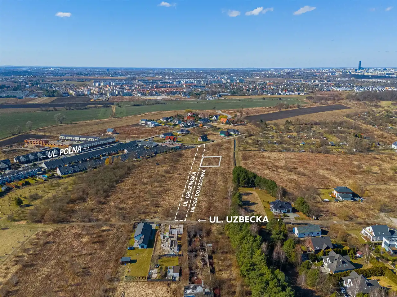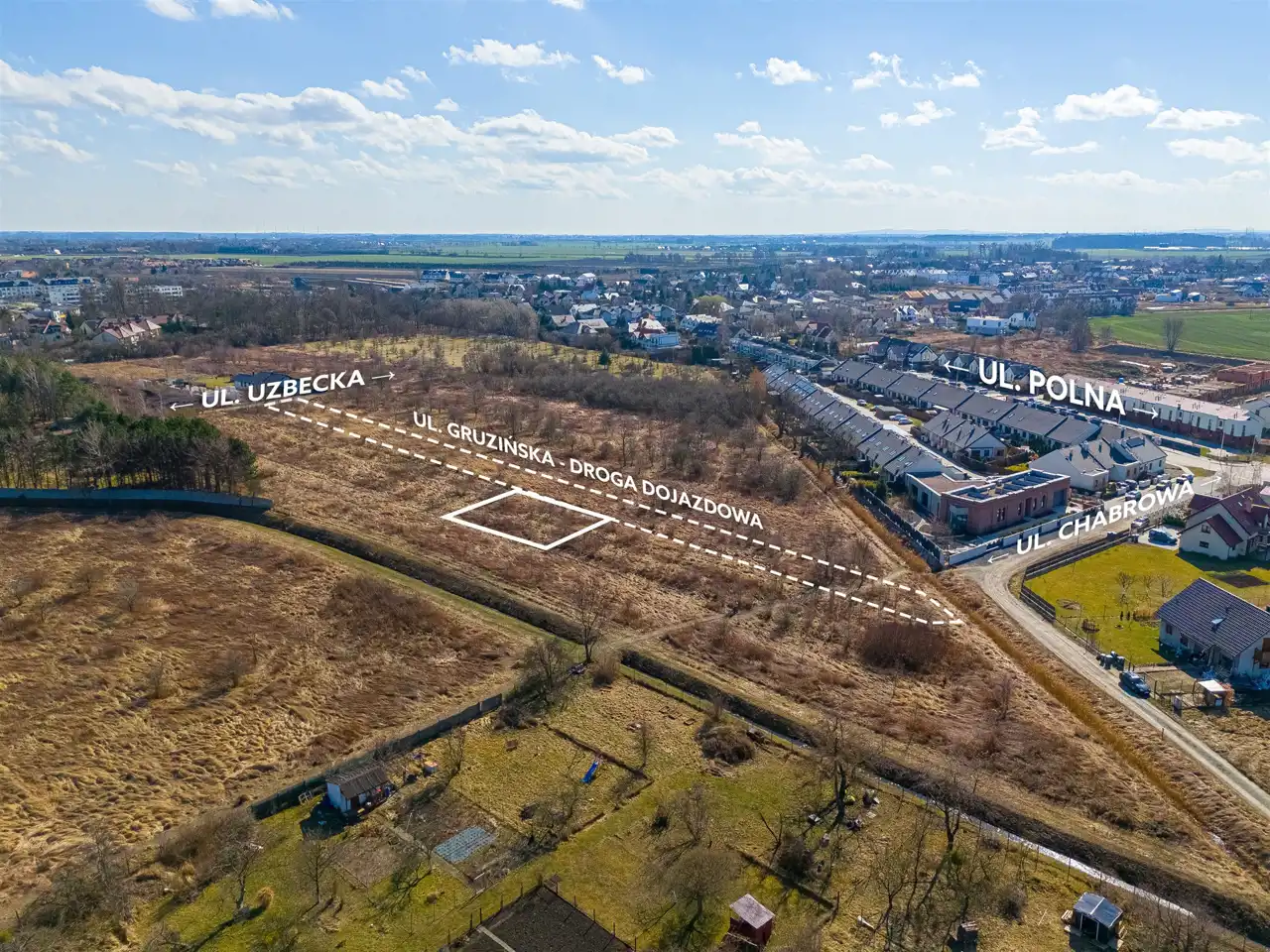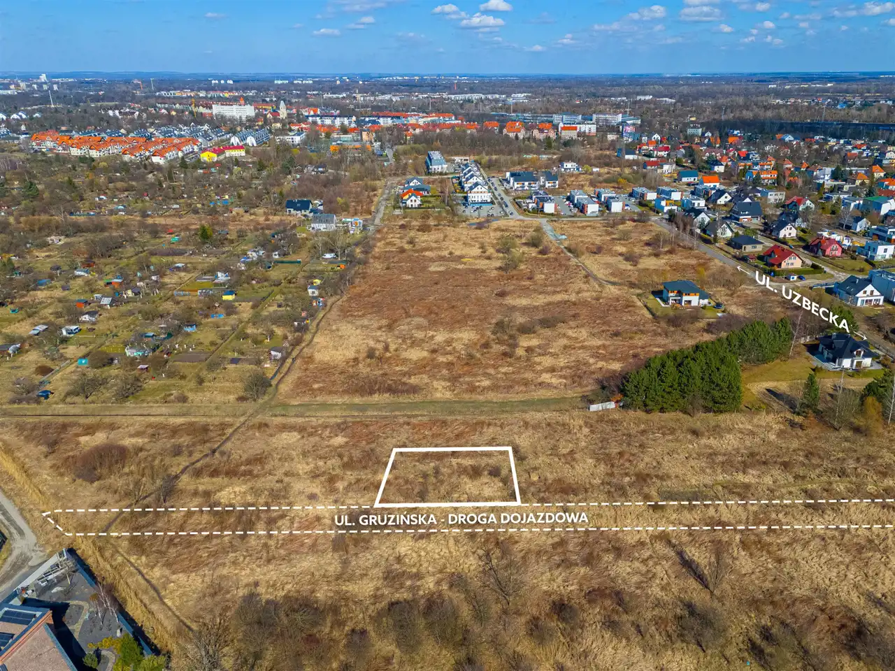 Nieruchomość o kształcie prostokąta, położona w pobliżu ul. Uzbeckiej i Gruzińskiej na nowopowstającym osiedlu domków jednorodzinnych. Dojazd drogą utwardzoną. W najbliższym sąsiedztwie znajduje się niska, kameralna zabudowa jednorodzinna oraz tereny zielone.