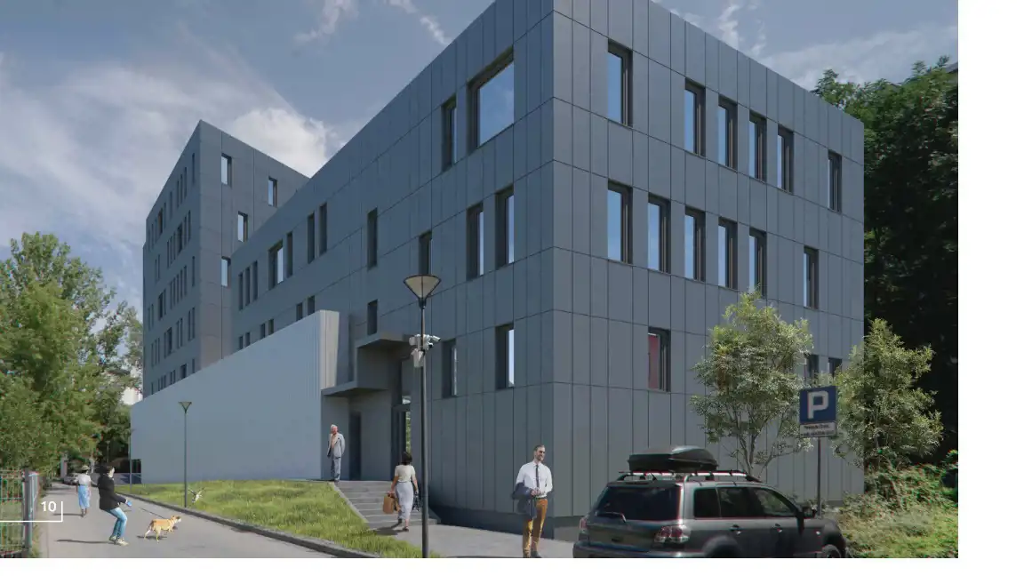 Dla terenu wykonano projekt z pozwoleniem na budowę na obiekt biurowy o pow. użytkowej 4400m2 wraz z garażem położonym w przyziemiu i na parterze.