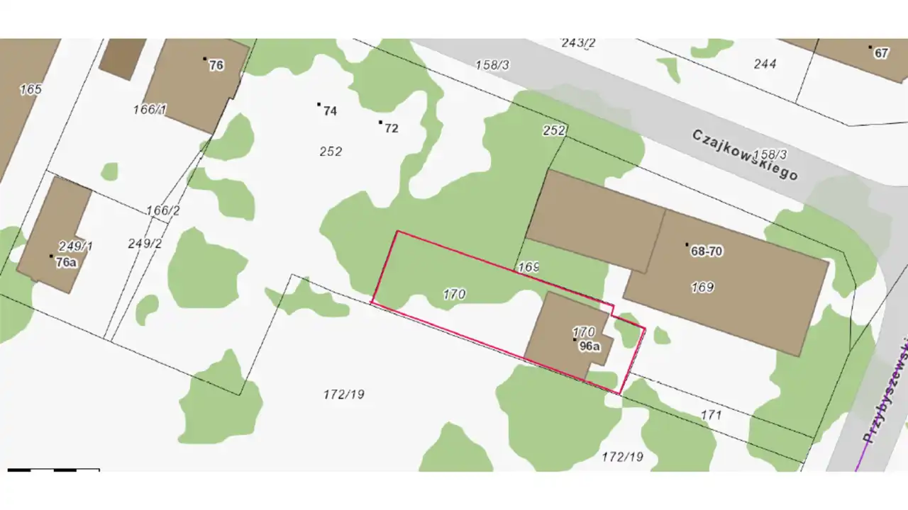 - Działka częściowo zagospodarowana, płaska, prostokąt