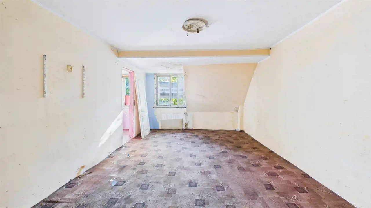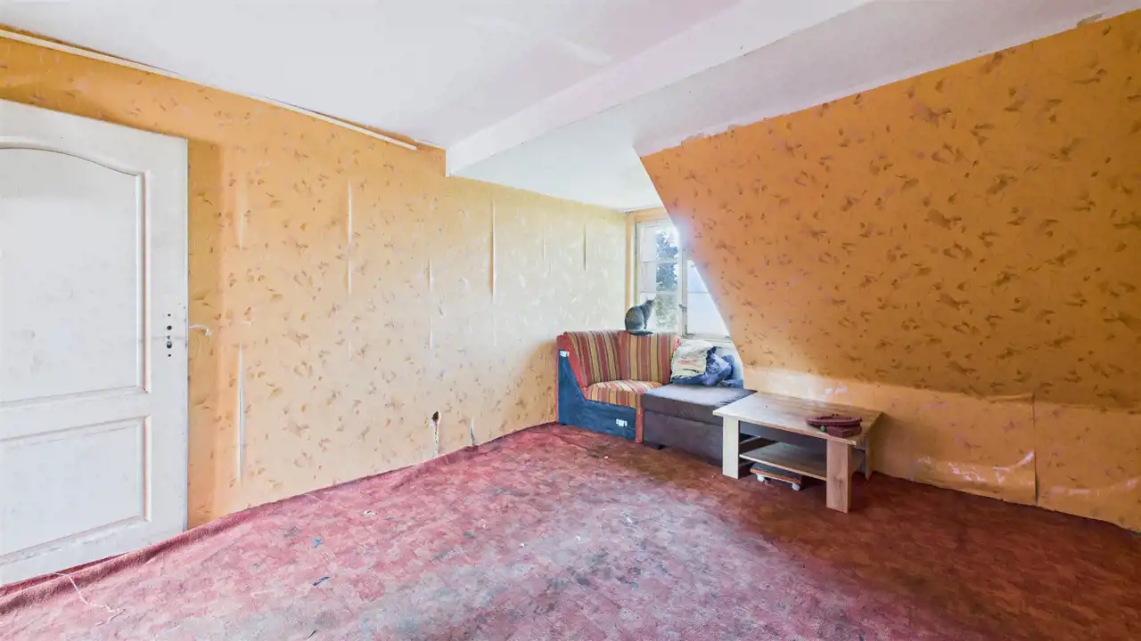 Dom o powierzchni użytkowej 74 m² (całkowitej ok. 108 m²) wymaga generalnego remontu lub rozbiórki, co daje nowemu właścicielowi pełną swobodę w aranżacji lub budowie nowego obiektu. Budynek nie jest objęty ochroną konserwatora zabytków.