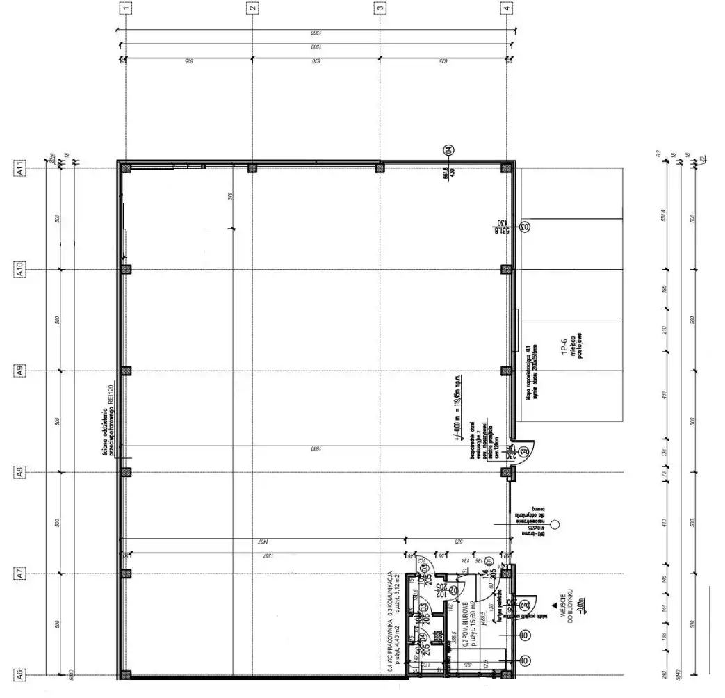 - moduł biurowo-socjalny w hali ( pokój biurowy, toaleta ) - 23 mkw - klimatyzacja w pokoju biurowym - wejście z ulicy oraz hali