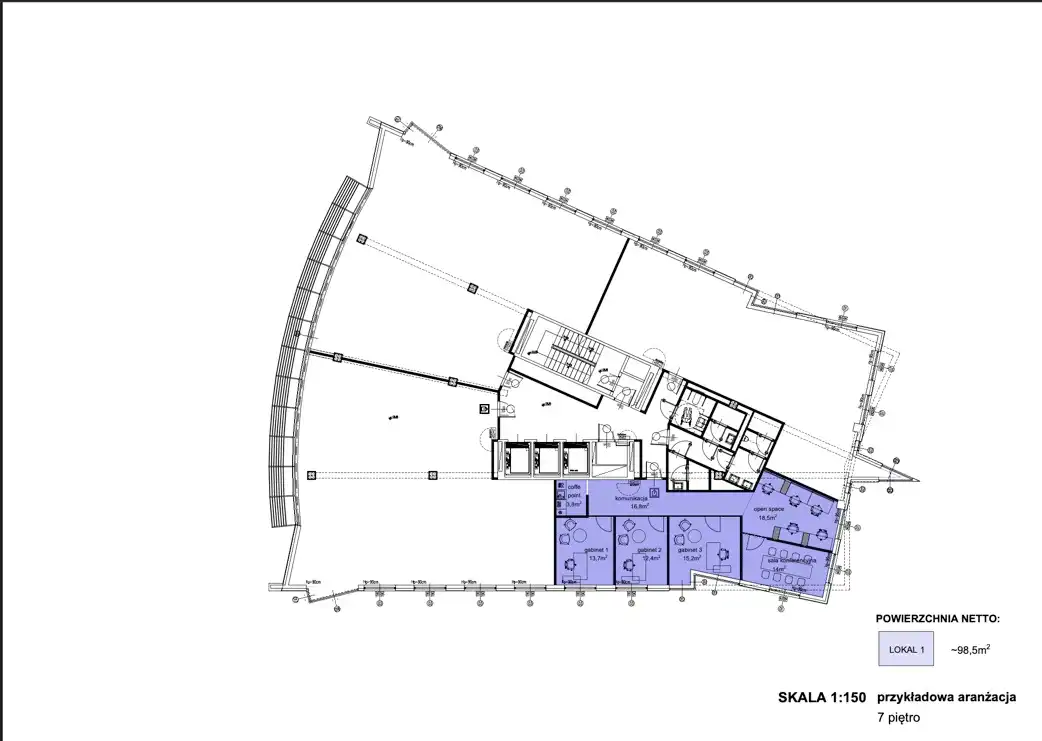 Lokal idealny pod działalność biurową czy usługową. Położony na 7 piętrze 11sto kondygnacyjnego budynku.