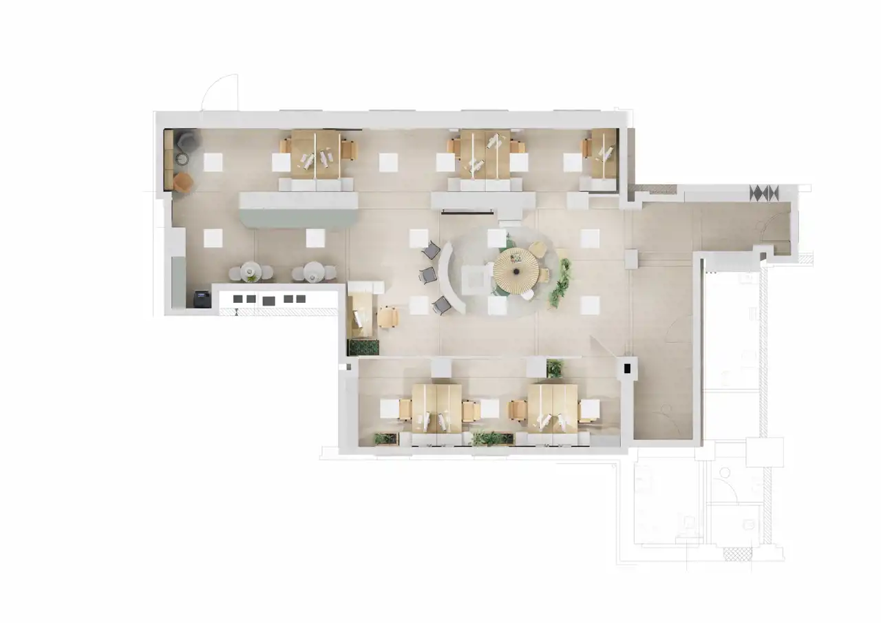 Lokal o powierzchni 155m2 w cenie 9.500zł netto/m2, posiada 2 wejścia (od strony klatki schodowej oraz drugie od strony parkingu/dziedzińca)