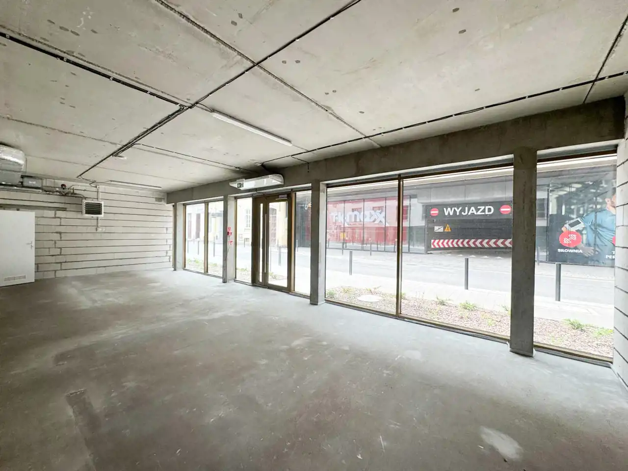duże, przeszklone witryny od strony ulicy, zapewniające znakomitą ekspozycję,