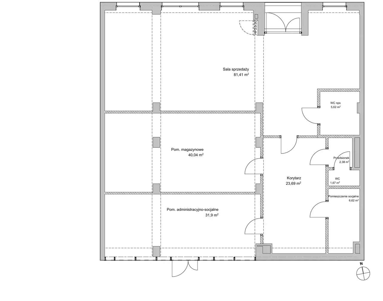Lokal dwustronny, duże witryny,2 wejścia (z dwóch stron)jedno od ulicy.