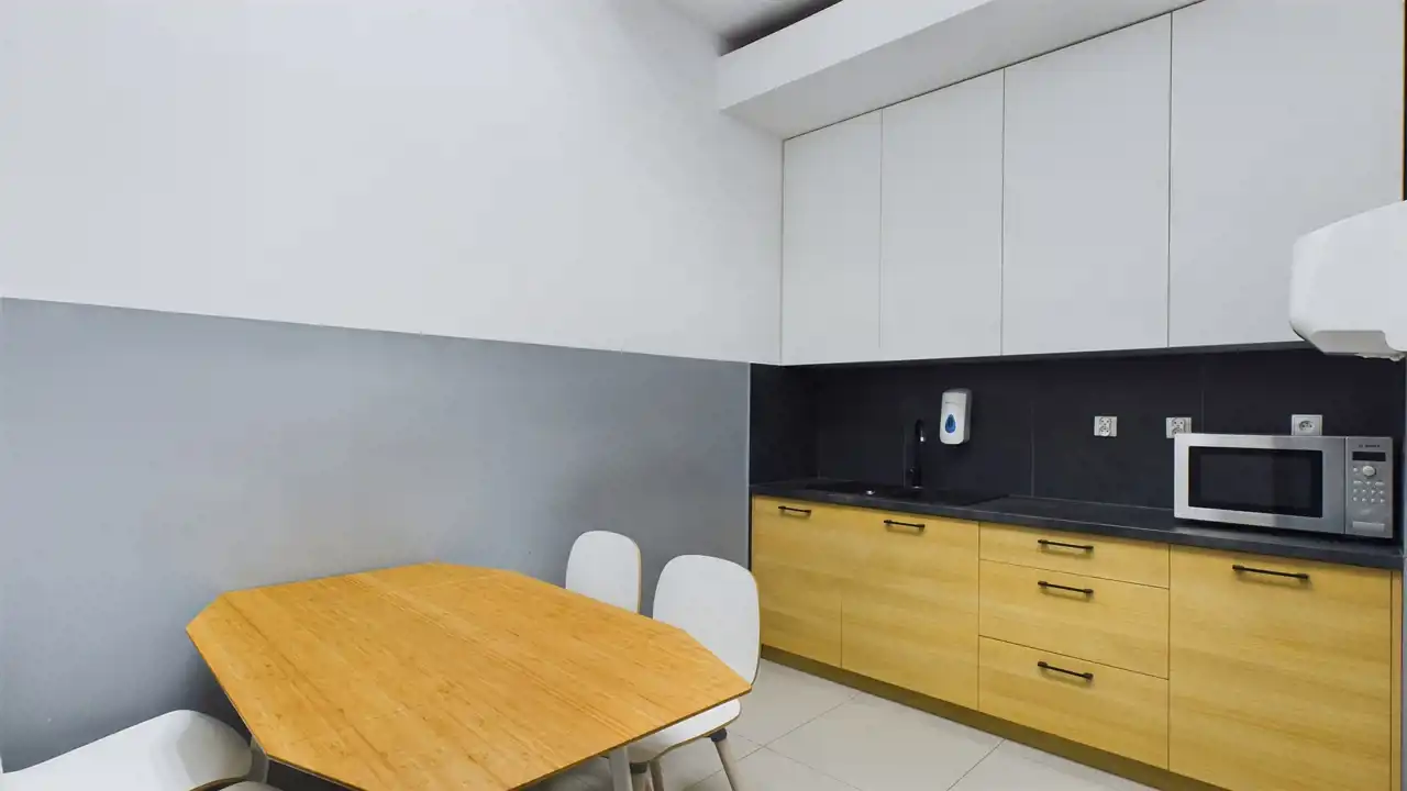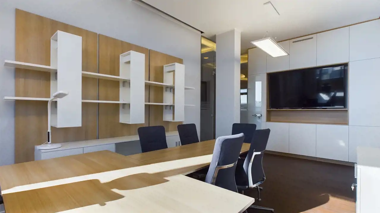 - Kompletne Wyposażenie: Lokal sprzedawany z nowoczesnym wyposażeniem, włączając biurka, krzesła, stoły konferencyjne, telewizory i meble biurowe, a także w pełni urządzony aneks kuchenny.