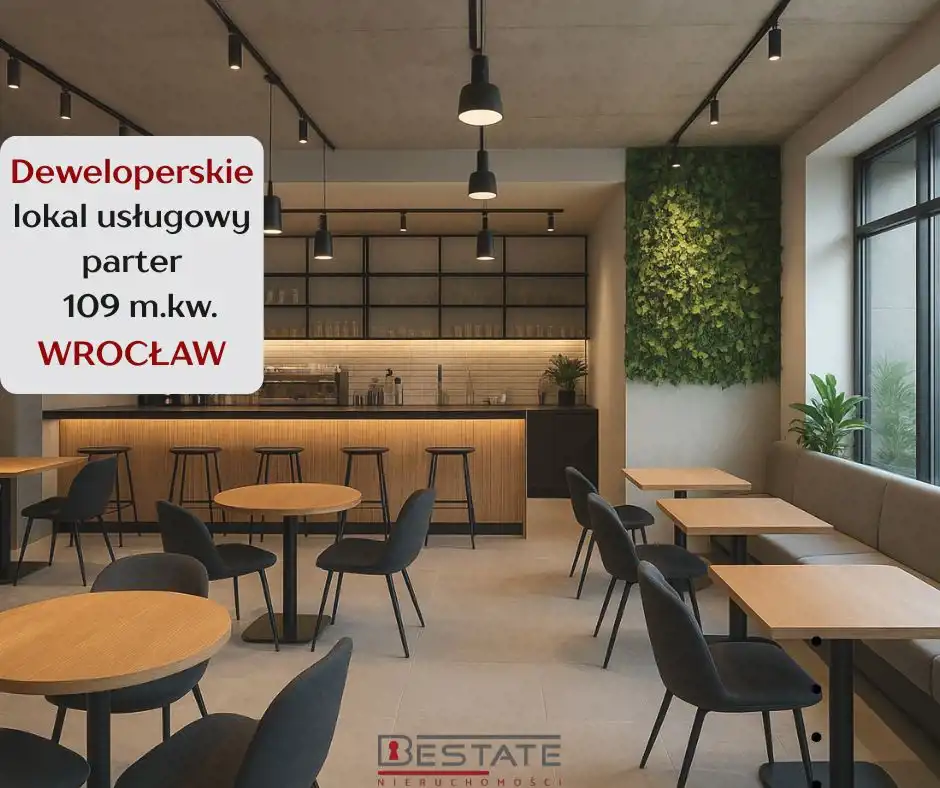 BESTATE Nieruchomości Wrocław oferuje do sprzedaży lokal deweloperski o powierzchni użytkowej 109 m.kw, znajdujący się na parterze w budynku mieszkalnym we Wrocławiu / Śródmieście. Składa się z sali sprzedaży, zaplecza socjalnego, wc oraz antresoli. Doskonały na prowadzenie różnego rodzaju działalności. 2 miejsca postojowe w cenie lokalu.