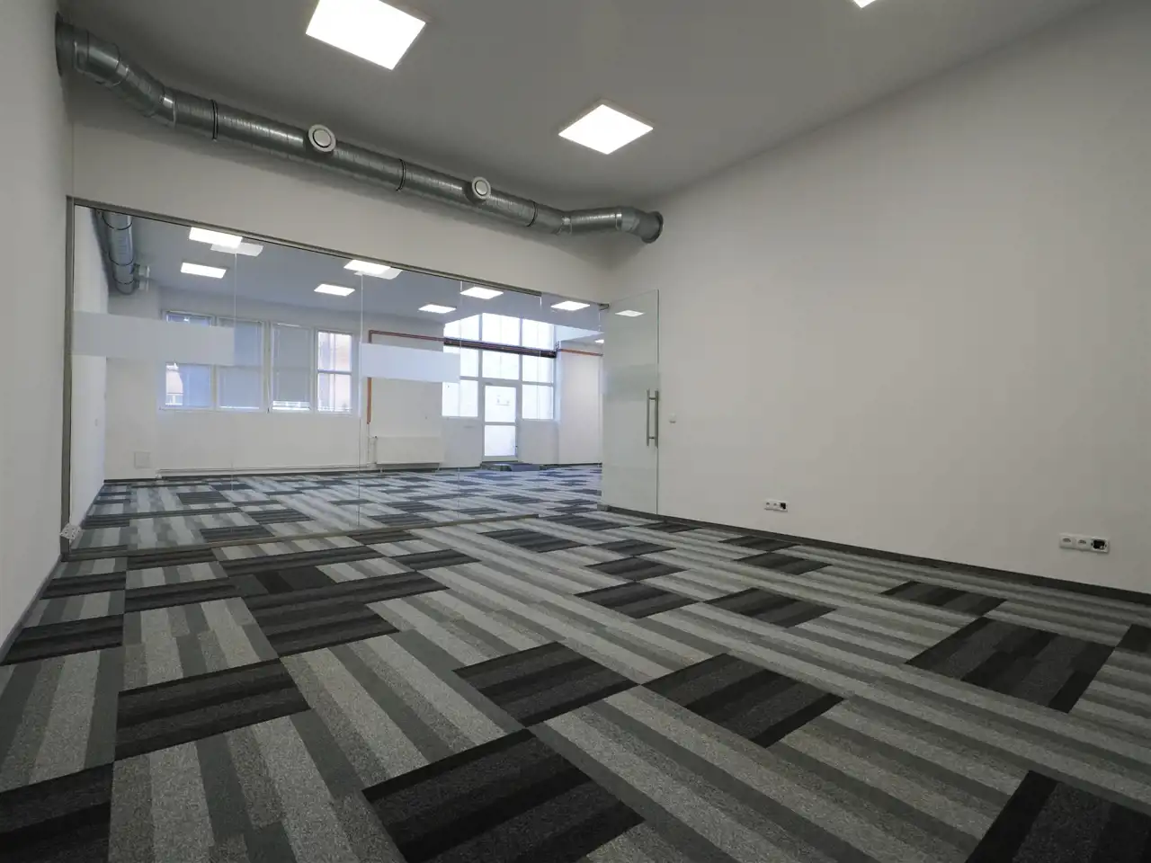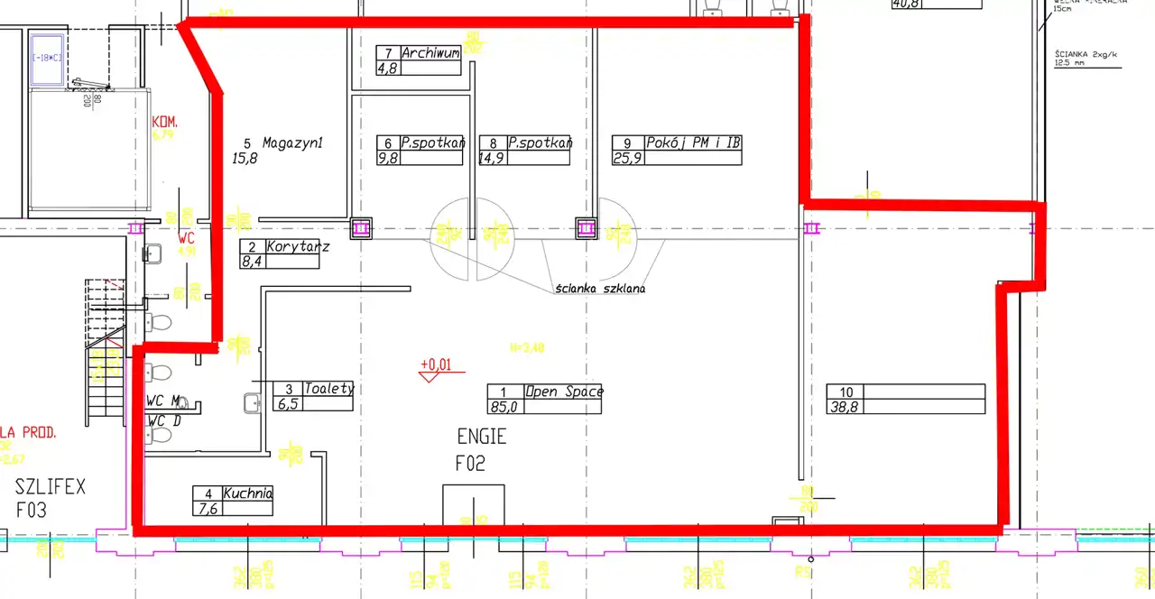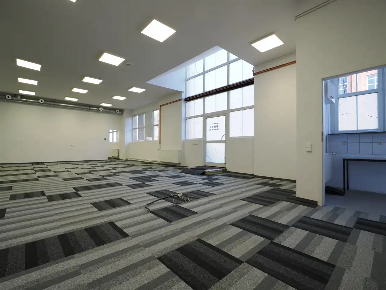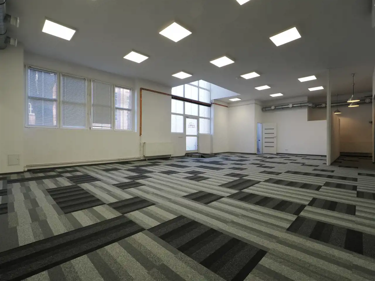 Open space, , trzy salki, pokój zamknięty, magazynek, socjal, łazienka.