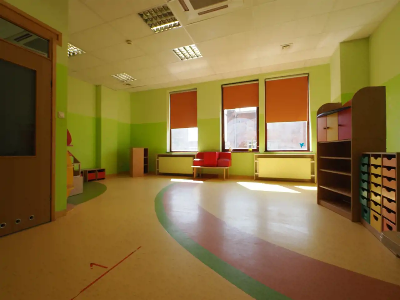 Hol, trzy duże sale, 3 węzły sanitarne.
