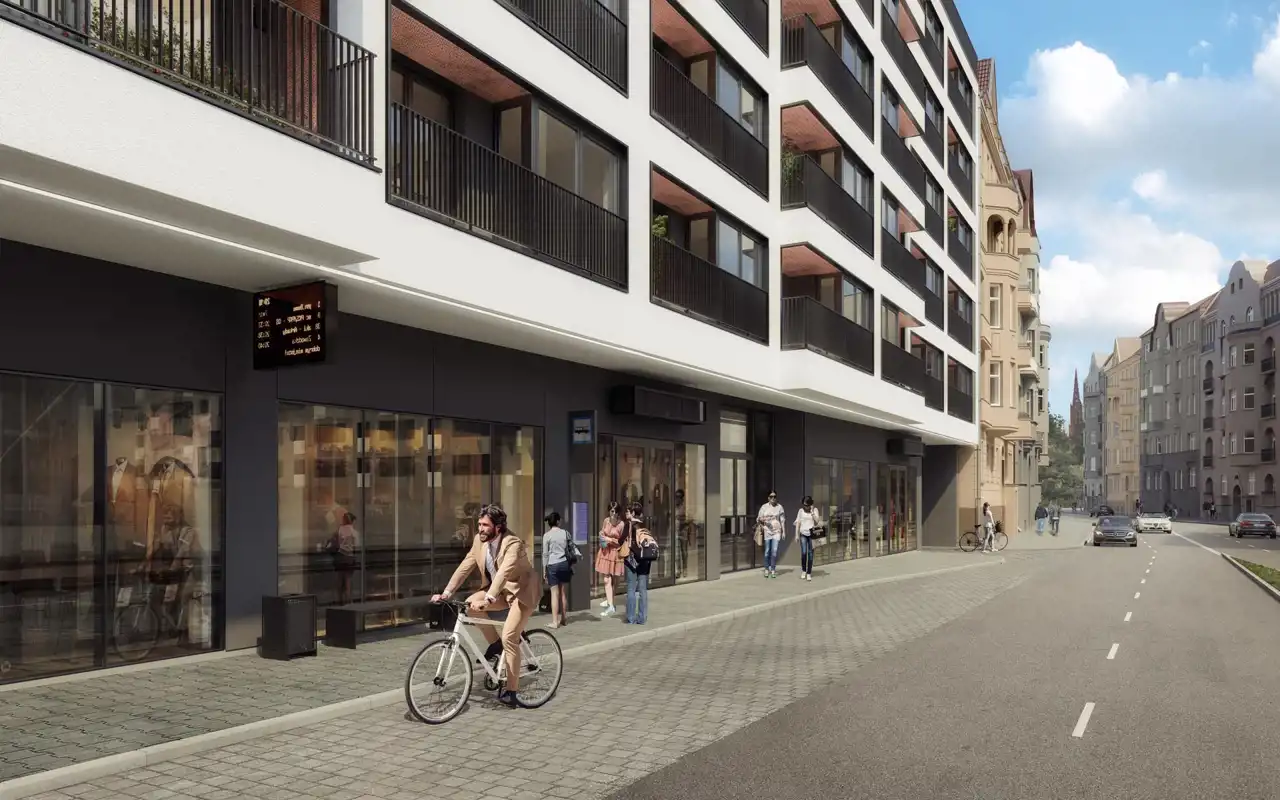 Lokal na parterze nowoczesnego budynku wielorodzinnego. Lokalizacja przy ruchliwej arterii komunikacyjnej, przy skrzyżowaniu ulic Wyszyńskiego i Sienkiewicza. Bezpośrednio przed lokalem znajduje się przystanek komunikacji miejskiej.
