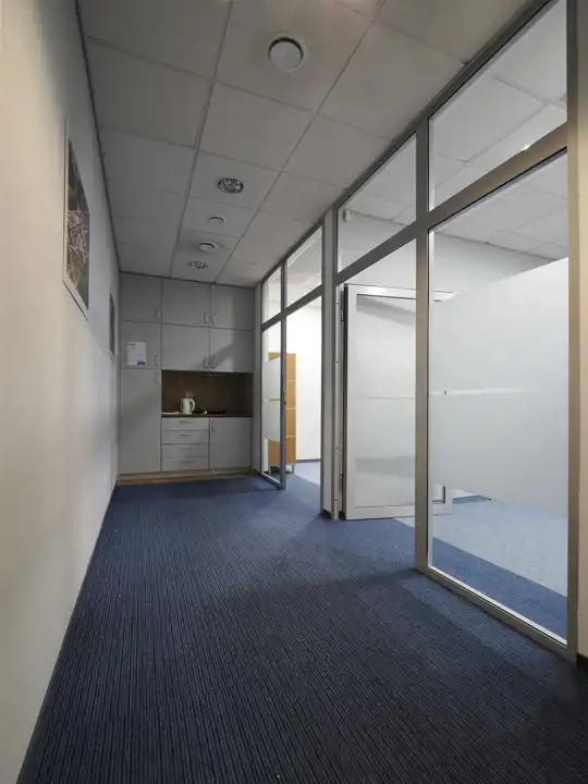 Hol, powierzchnie typu open space, gabinet, trzy salki konferencyjne, socjal.