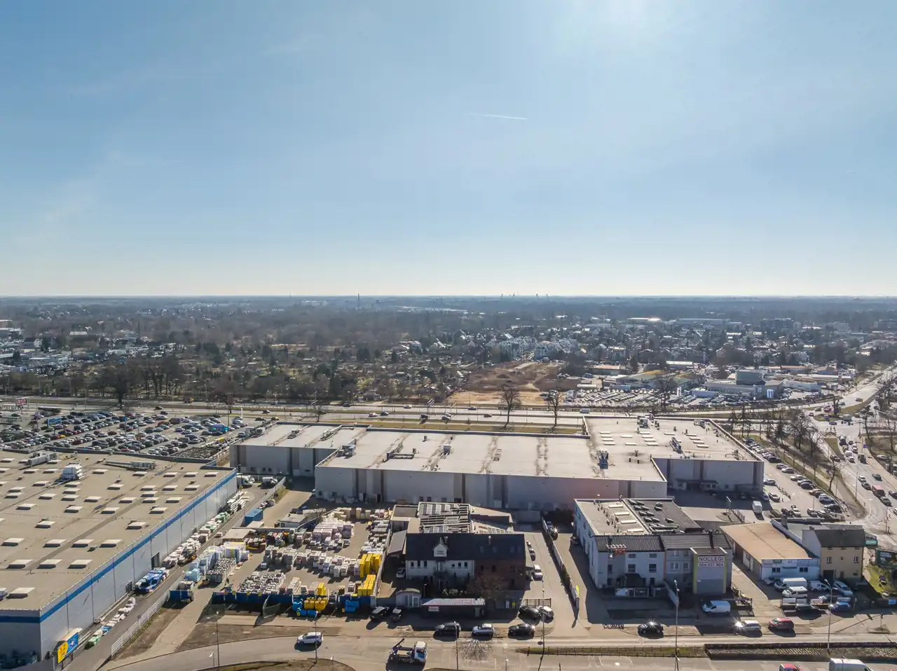 Instalacja centralnego ogrzewania i cwu zasilana z 2-ch pomp ciepła (odrębnie dla części biurowej i części produkcyjno-magazynowej) wspomaganych instalacją fotowoltaiczną (panele na dachach budynku). Grzejniki w części biurowej tradycyjne, w części produkcyjno-magazynowej nagrzewnice wodne.