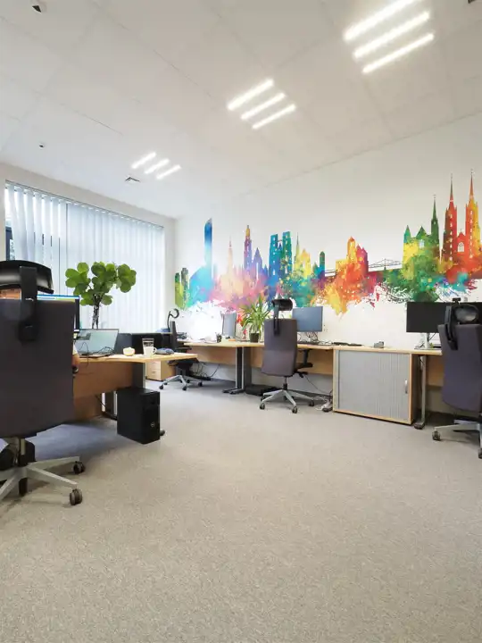 - łatwe parkowanie – miejsca parkingowe dla pracowników abonamentowane 150 zł/mc, dla gości bezpłatne