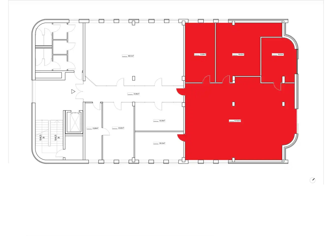 Open space, gabinet, dwie salki konferencyjne.
