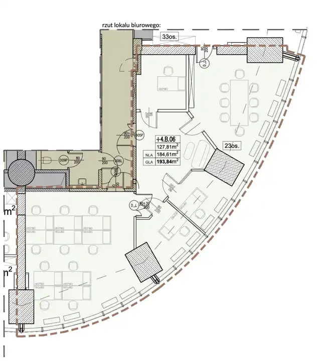 Istnieje możliwość modyfikacji układu pomieszczeń – właściciel dopuszcza adaptację powierzchni do indywidualnych potrzeb przyszłego najemcy.
