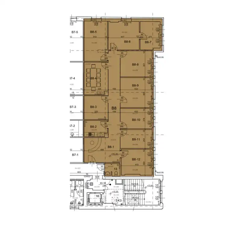 Sekretariat, salki konferencyjne, gabinety, , pokój zamknięty, archiwum, serwerownia, kuchnia, toaleta.