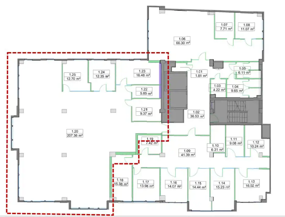 Kondygnacje biurowe mogą być użytkowane przez jednego lub wielu najemców.