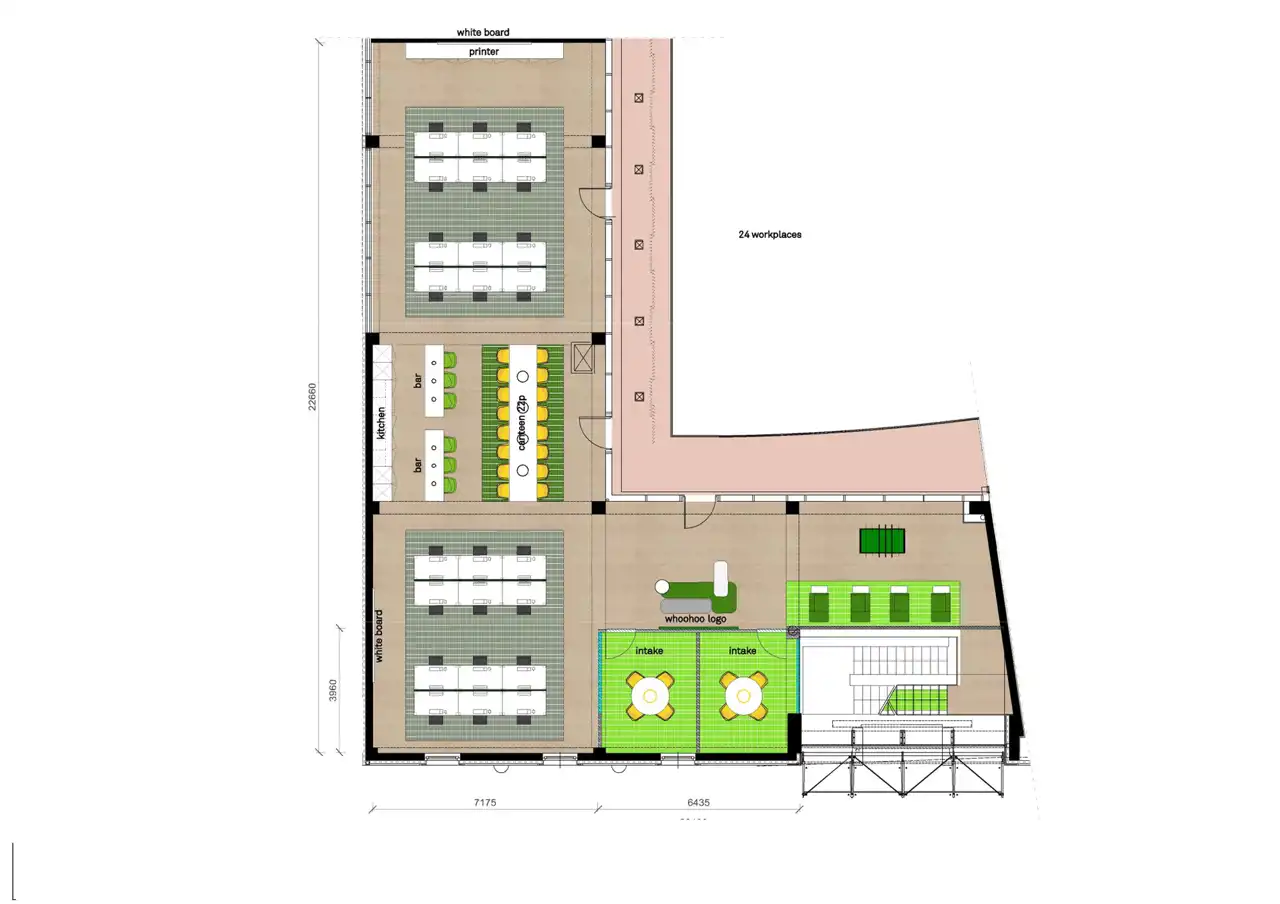 Open space z aneksem kuchennym, gabinet. salka konferencyjna